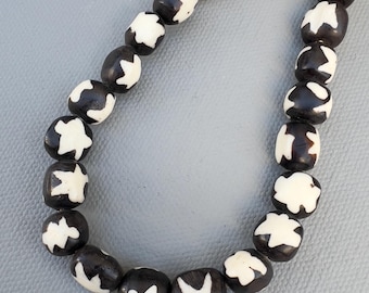 Handmade African Black Recycled Glass Bead Strand, 24 Inches
