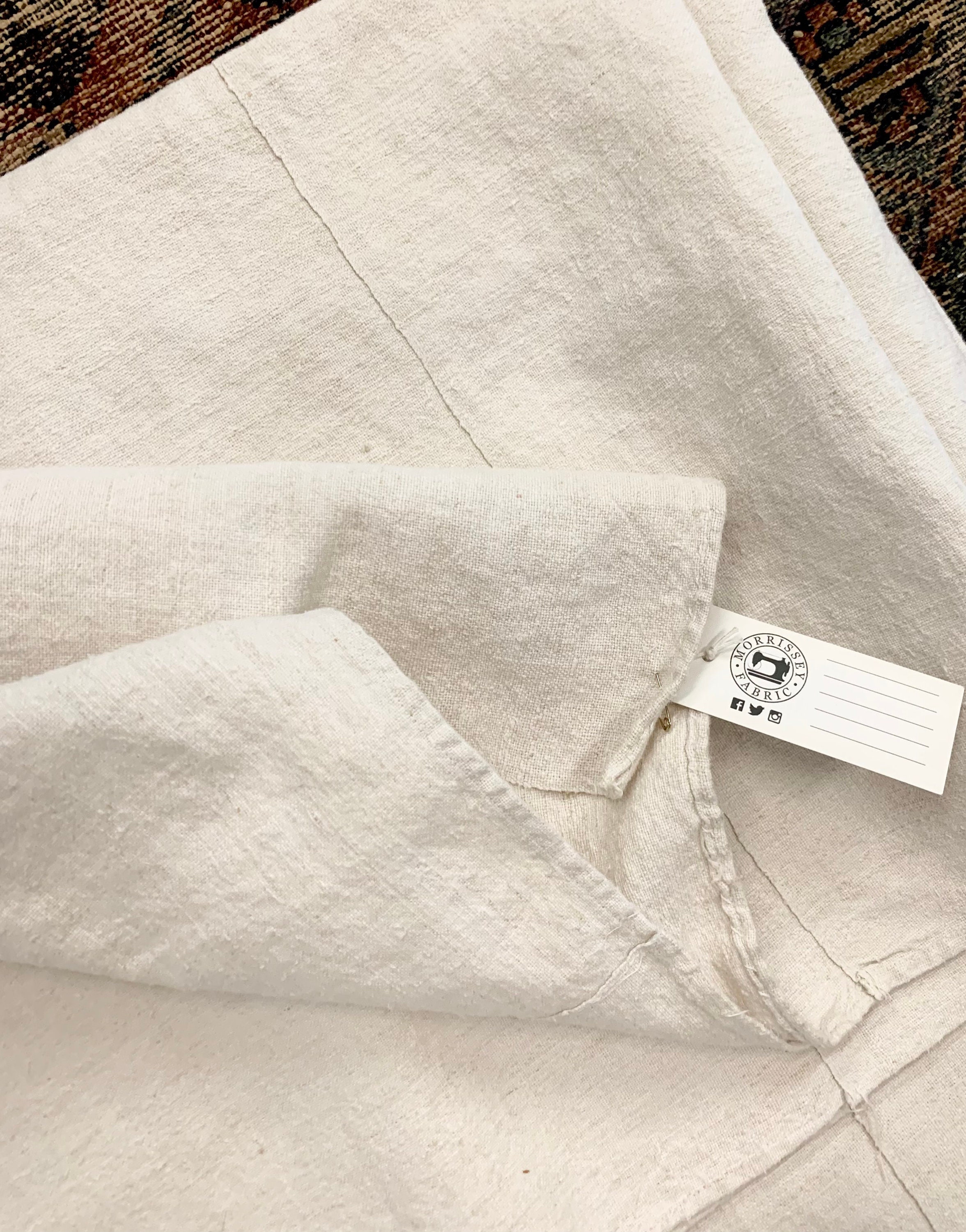 Due to the handmade nature of these linens (homespun natural linen fibers and handwoven on a wooden loom), there are some minor imperfections in the weave of the fabric. These are considered part of their character.