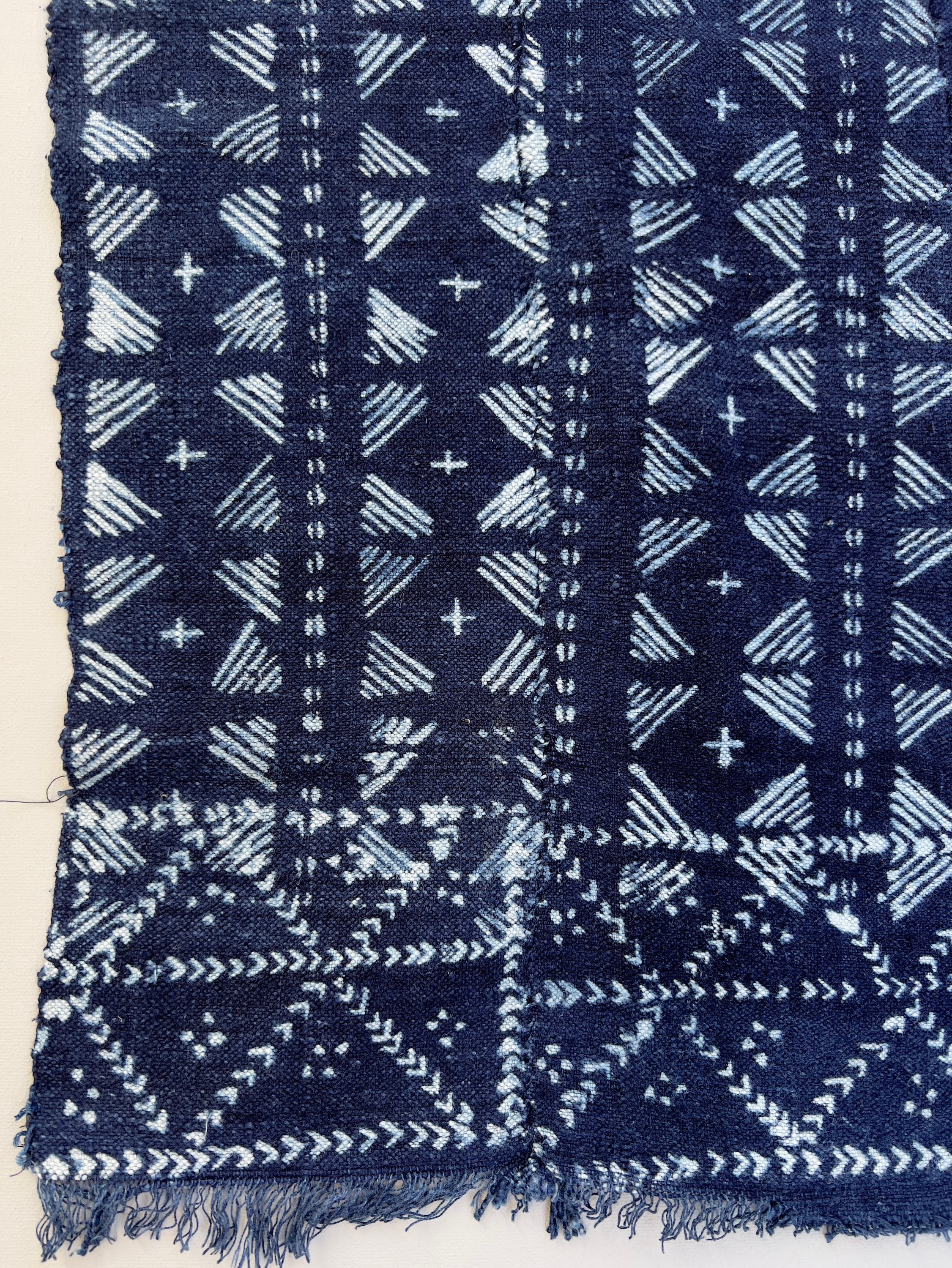 This mud cloth indigo is in good condition with areas of dark and light fading.