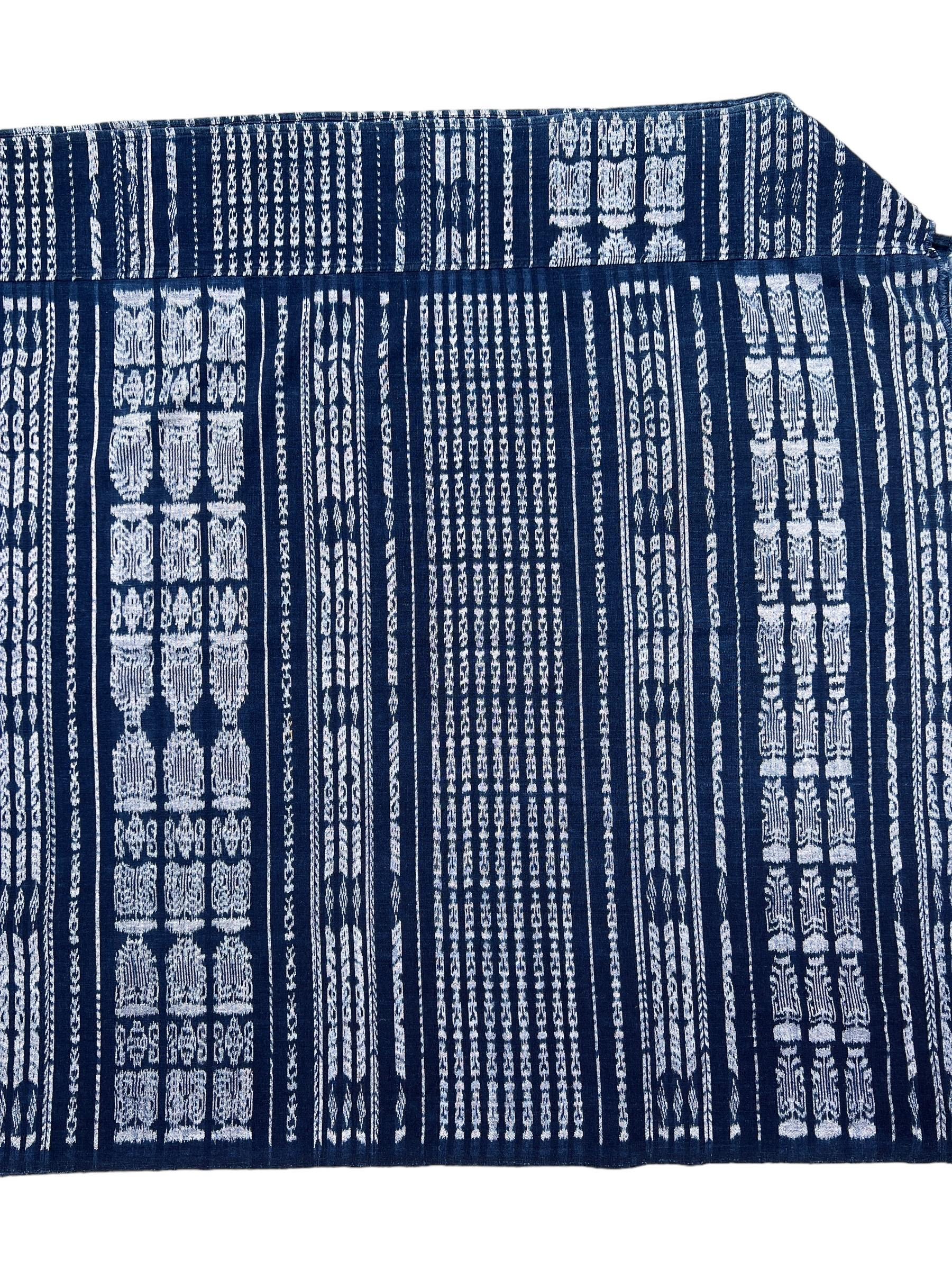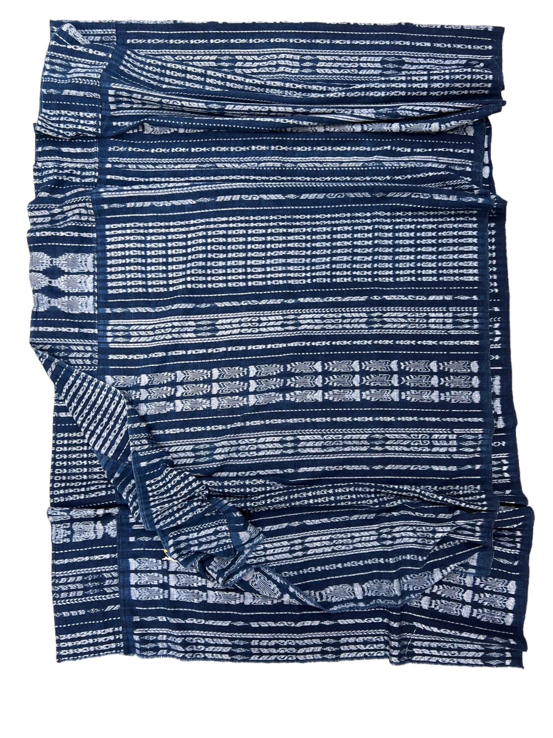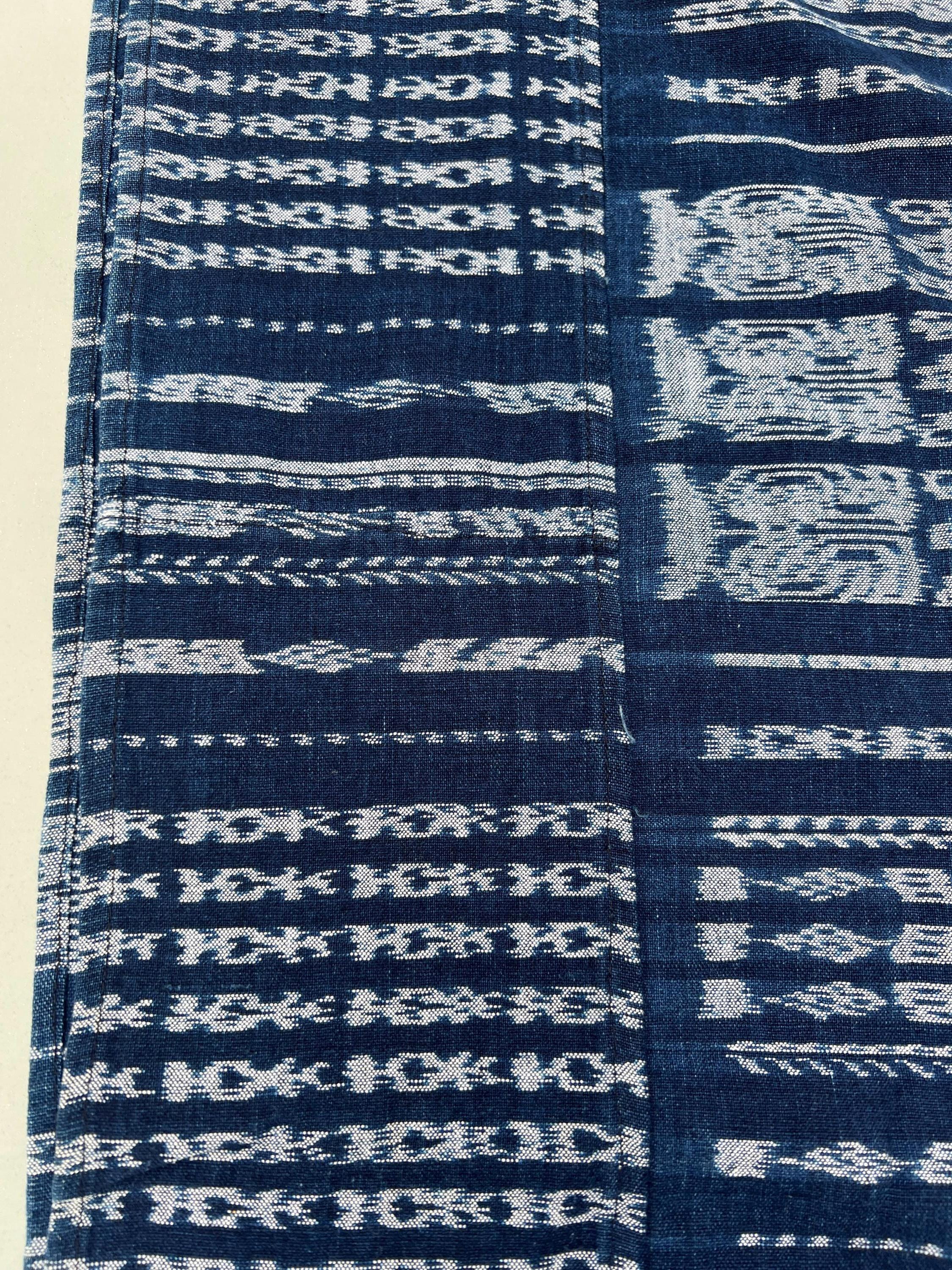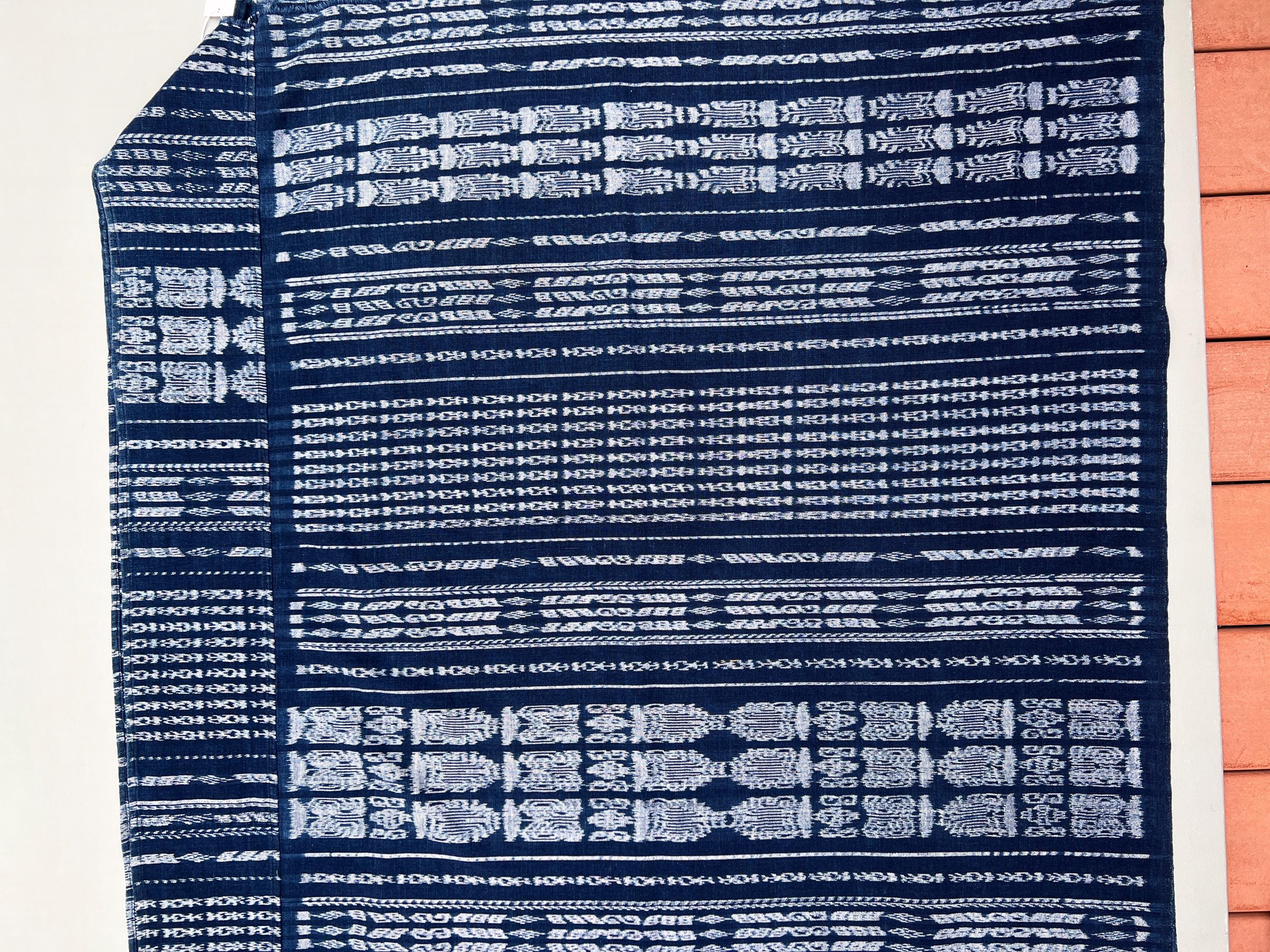Vintage Guatemalan indigo Corte textile in a denim blue and white Ikat detail stripes. Use this textile for a Boho decor throw, pillow covers, slip covers, or use to make a tote bag or apparel! Great denim alternative. A fabric favorite for upholstery or loads of pillows.