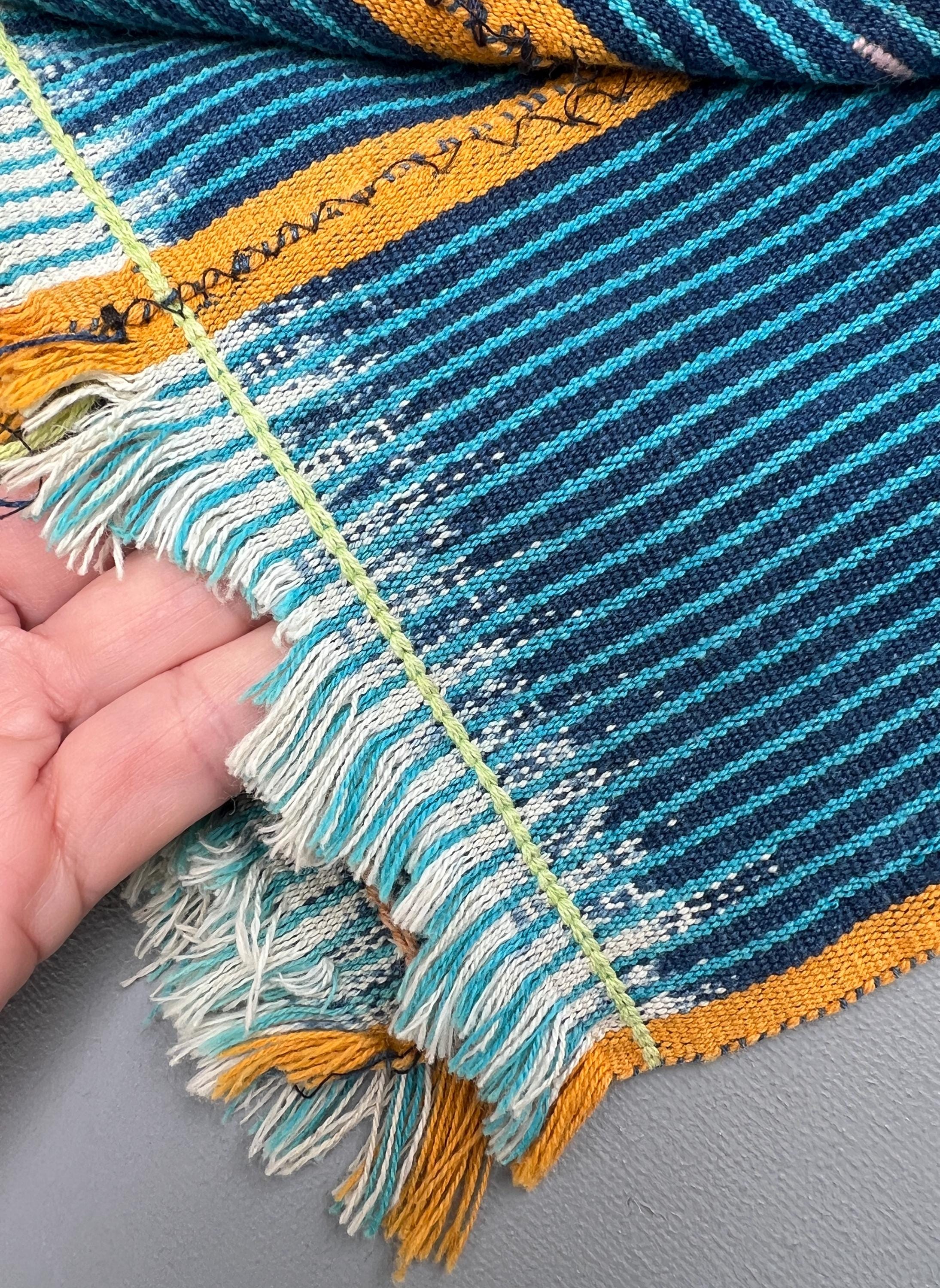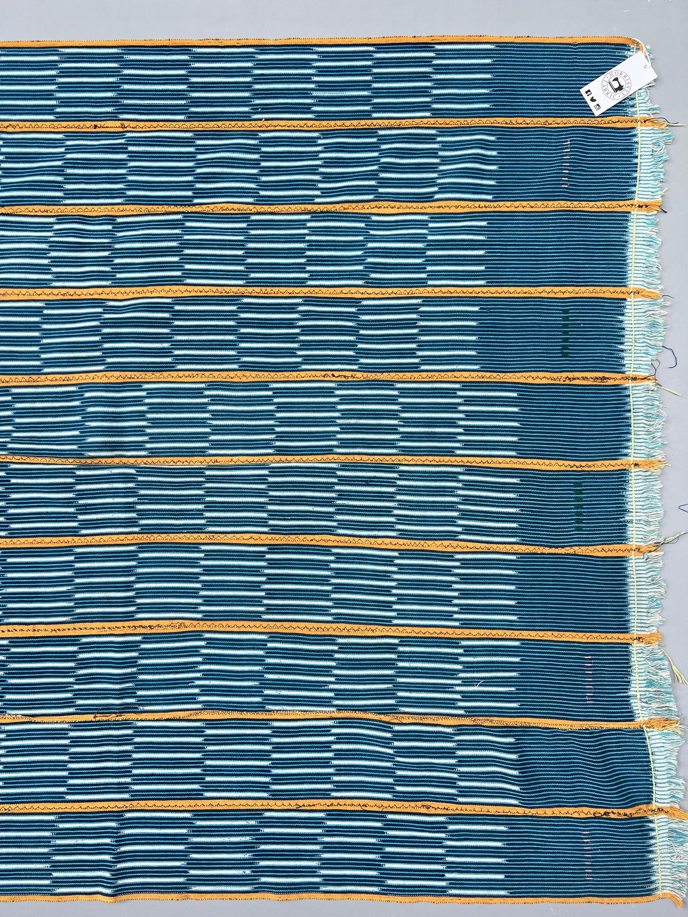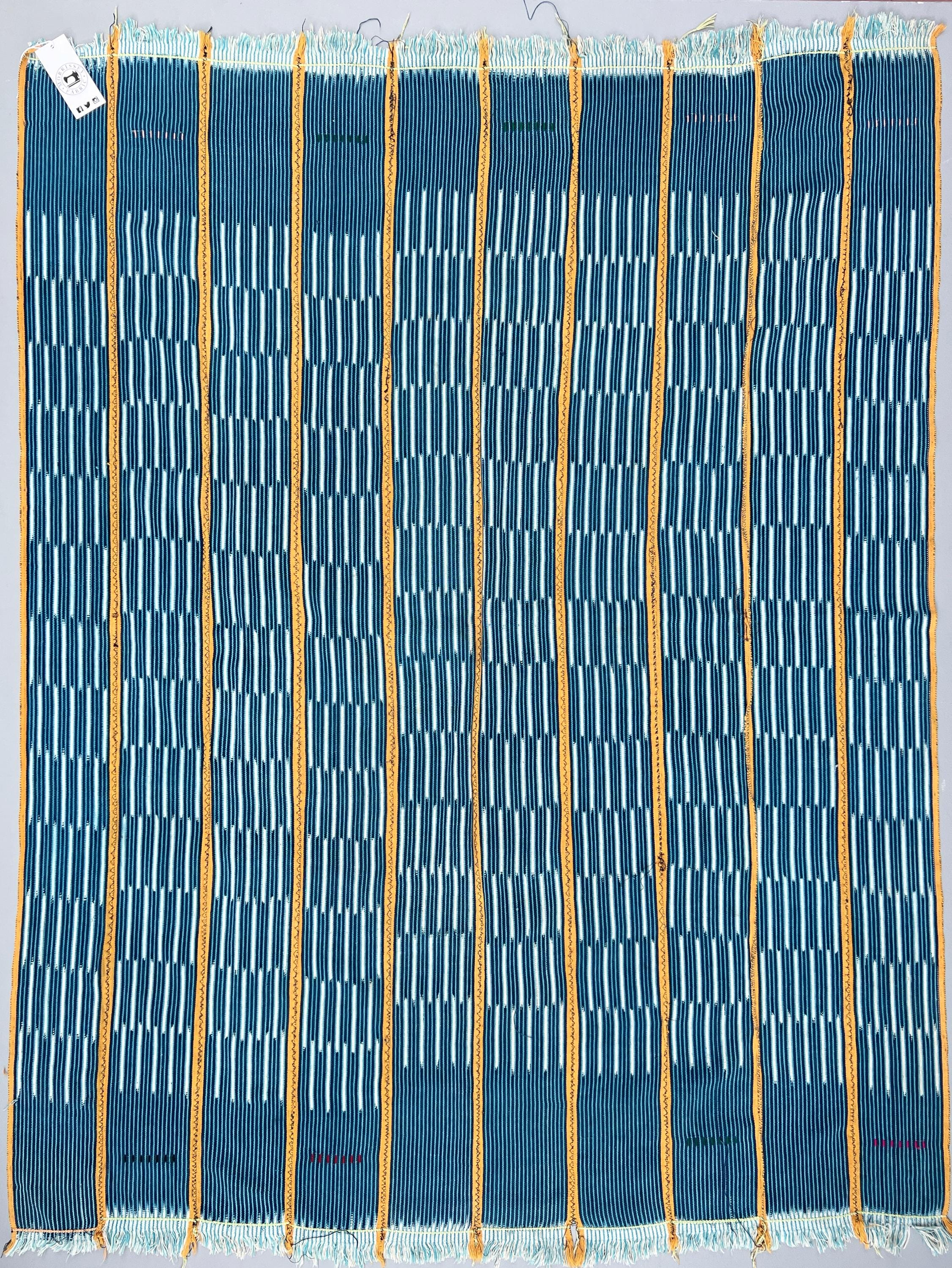 Vintage boho throw blanket, Indigo blue, light teal/turquoise, orange, and white with bright accents. A lovely African fabric for a coastal, cultural decor project. Ethnic global style. Unique textile that’s one of a kind.