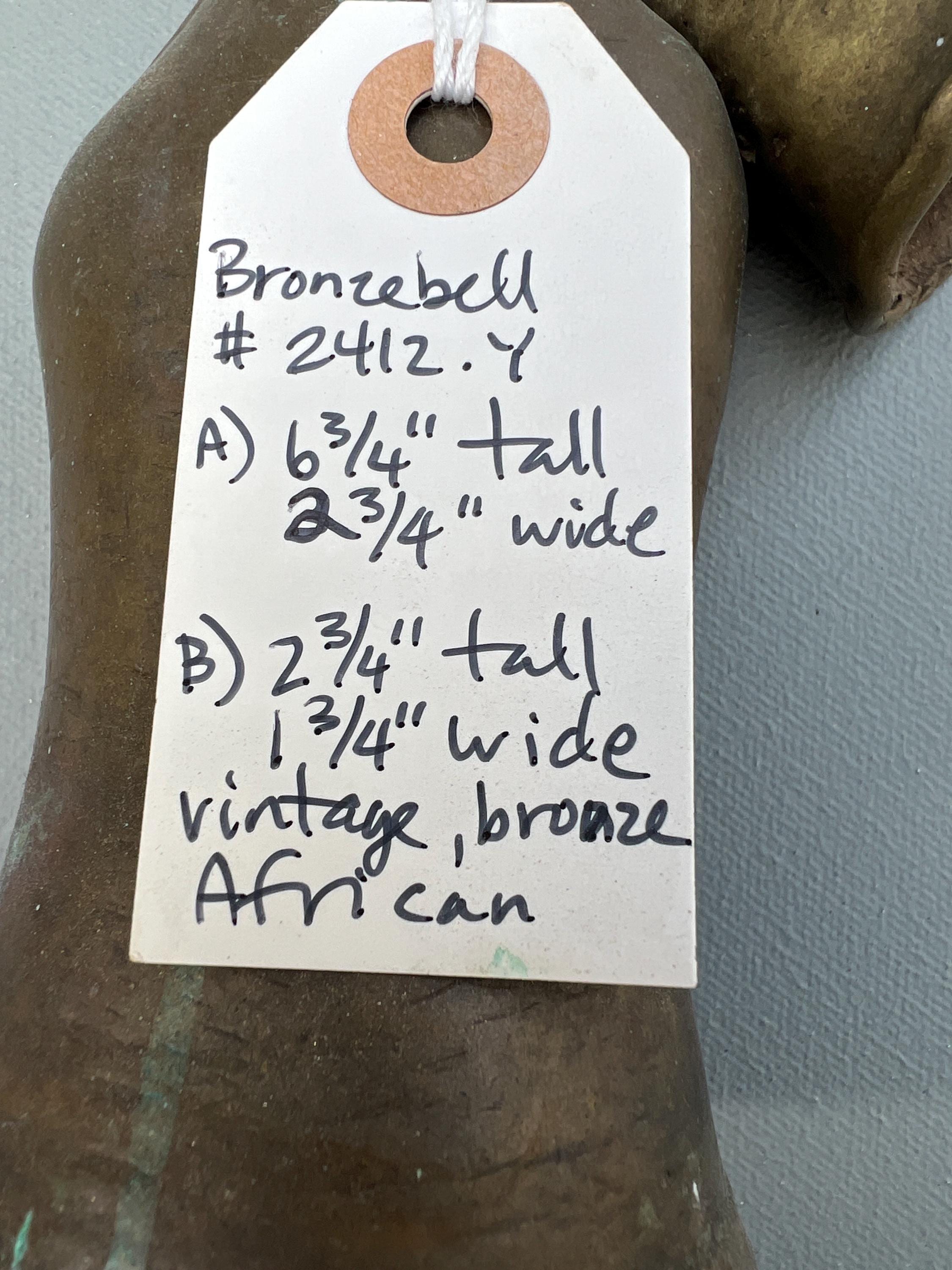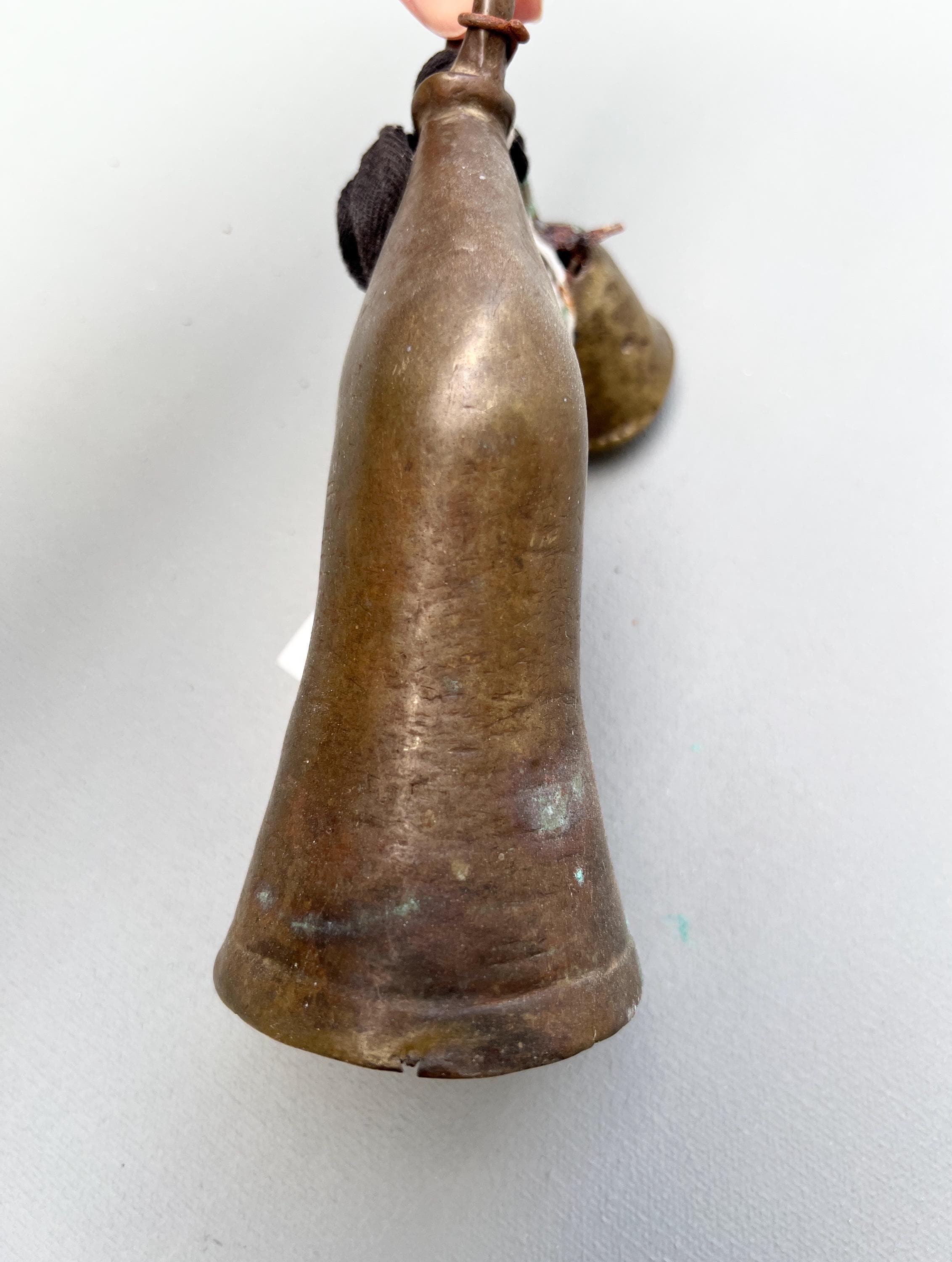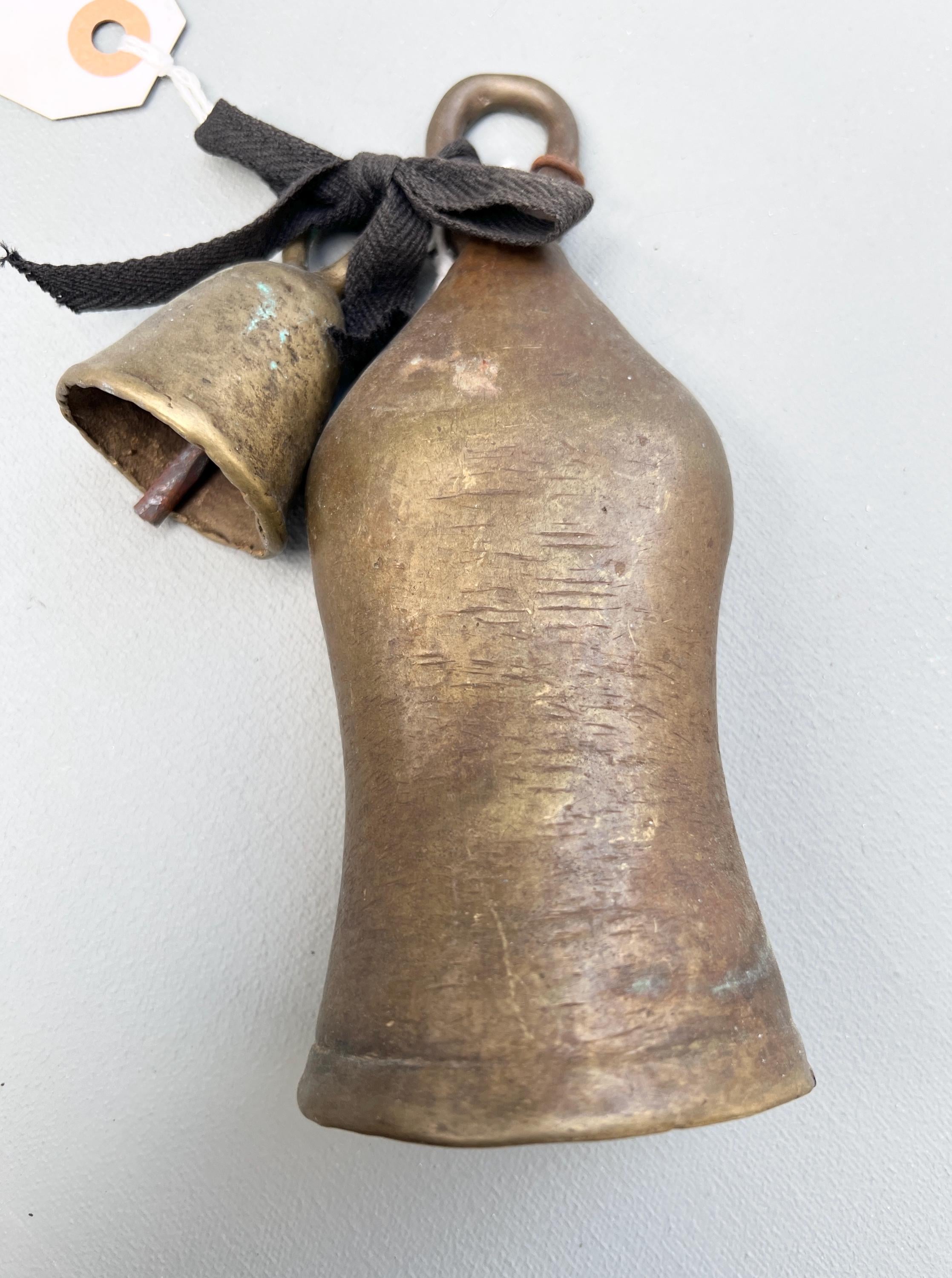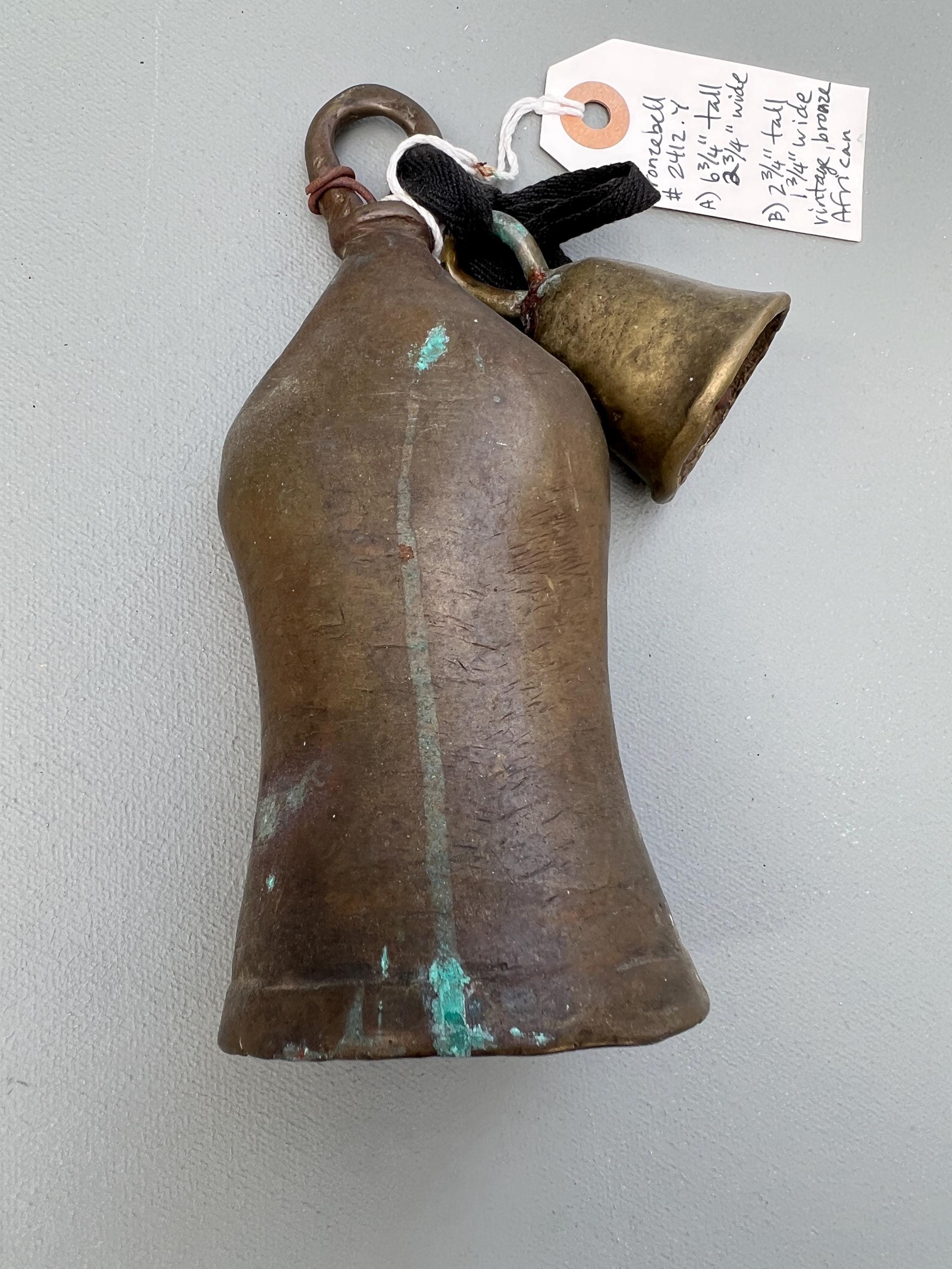 Bronze vintage bells- One large and one small bronze bell set. Primitive, hand made, and solid bronze. This listing is for the set of two in the photos.