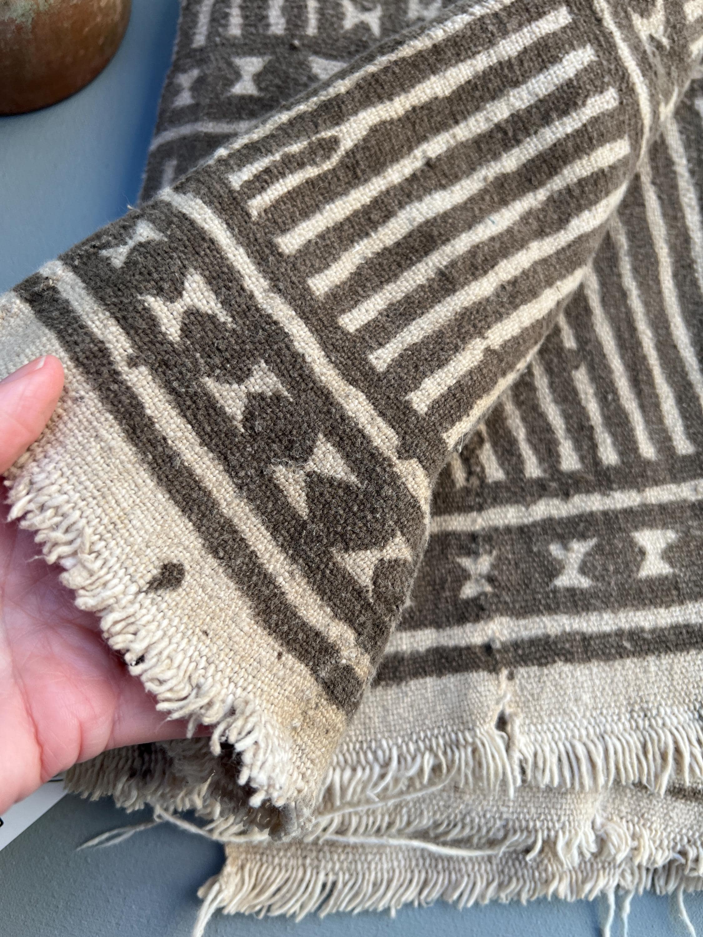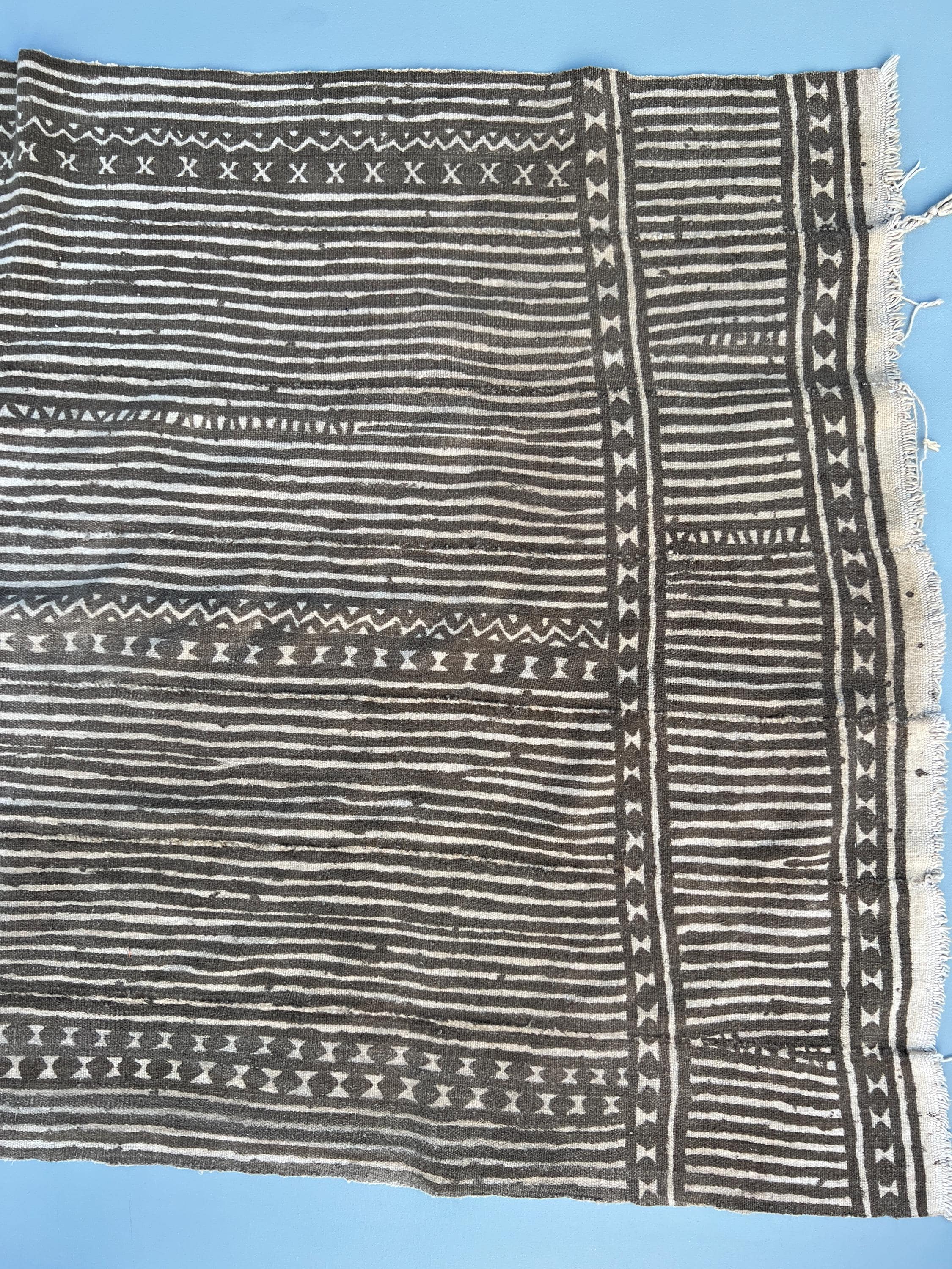 These are areas where the fermented mud pattern has faded. This is a wonderful textile for display or to make into pillows.