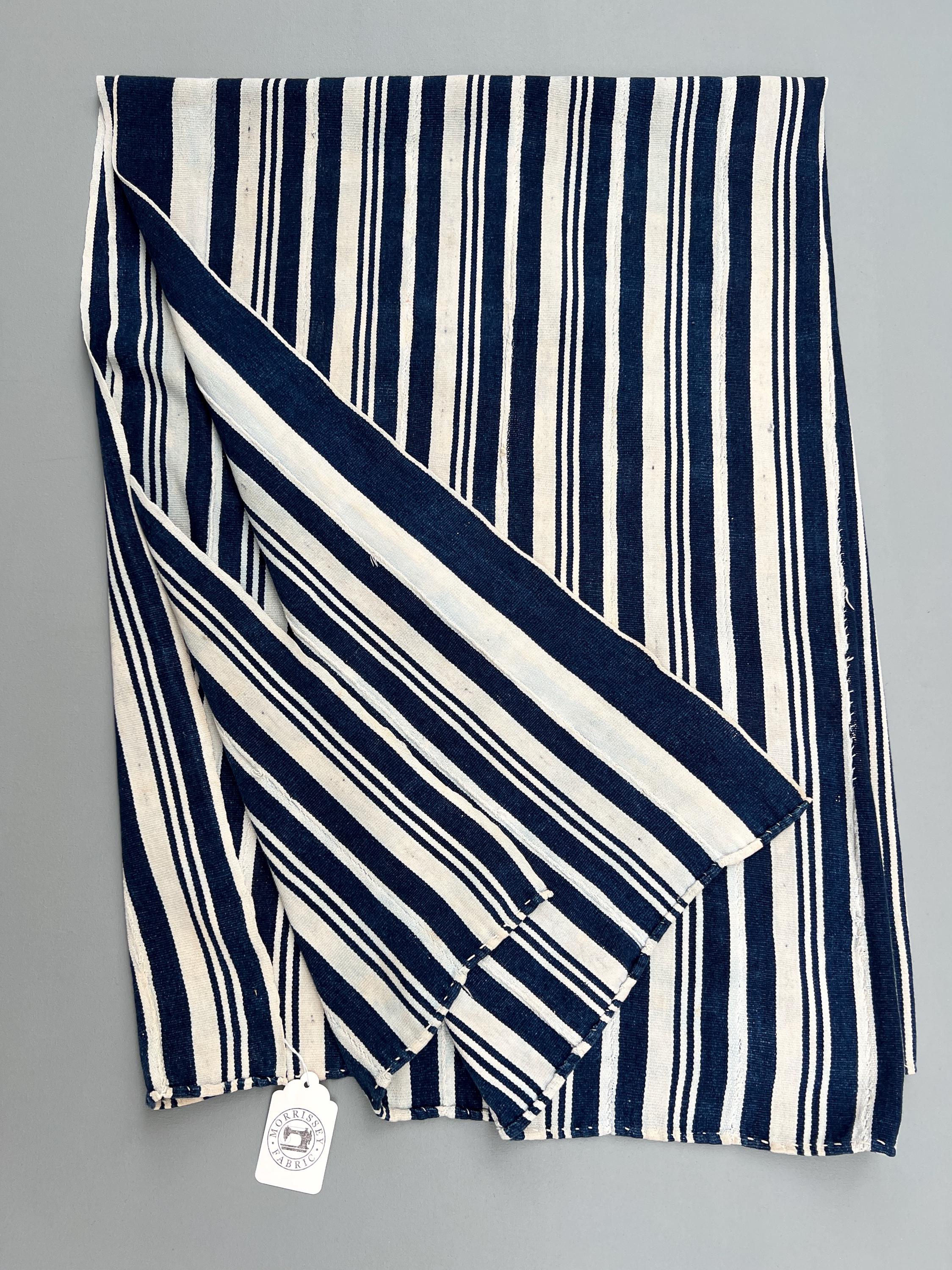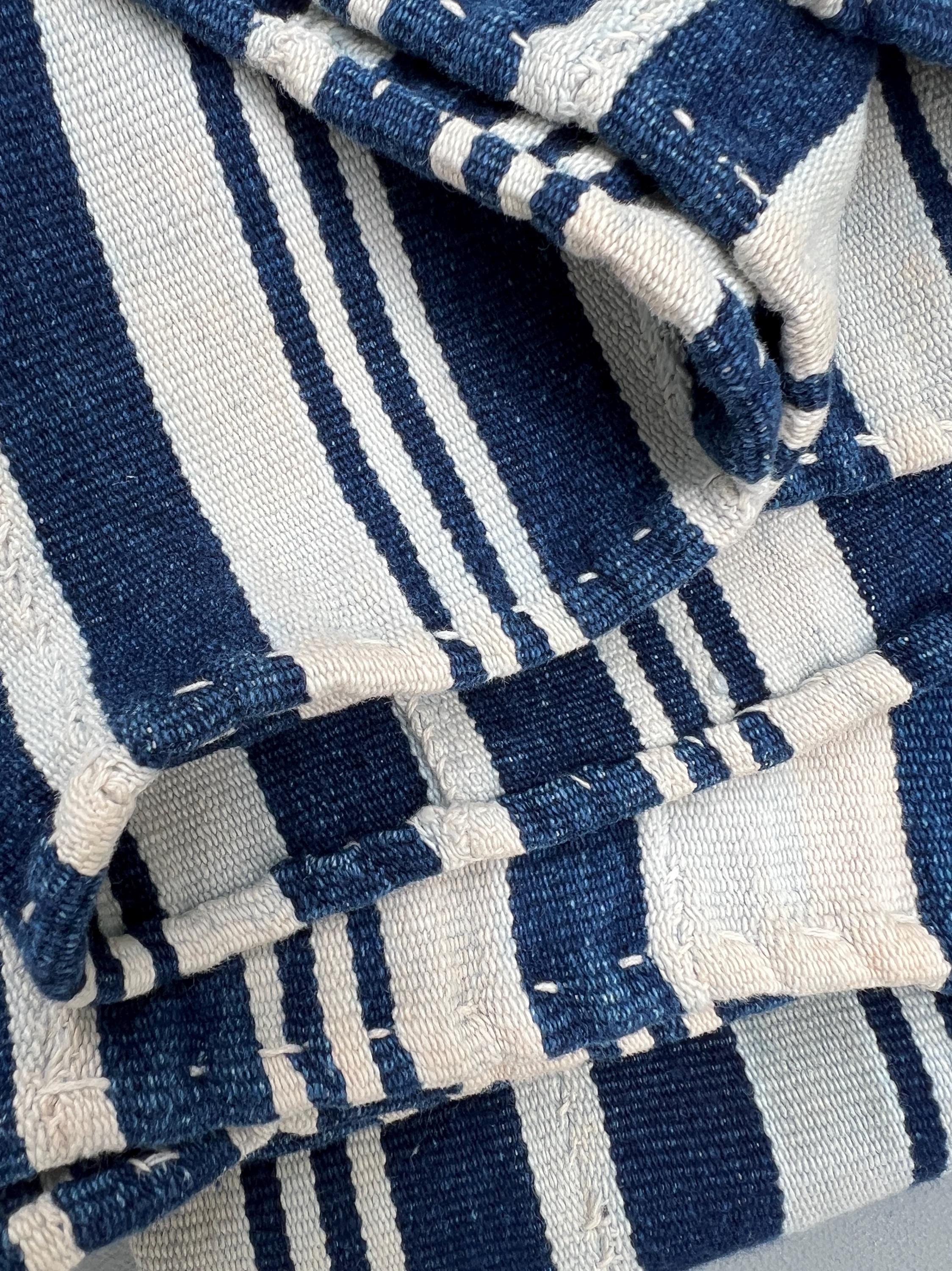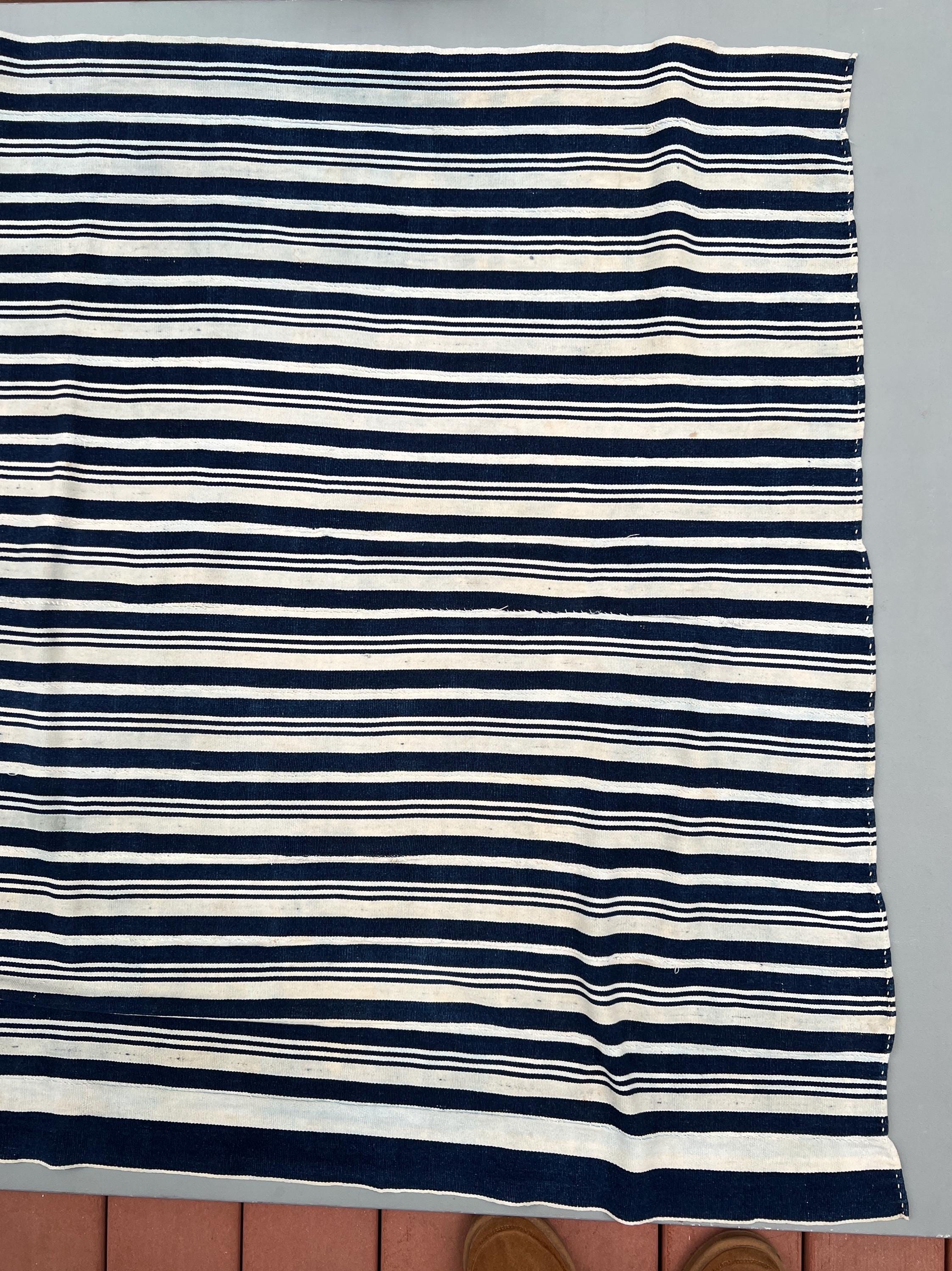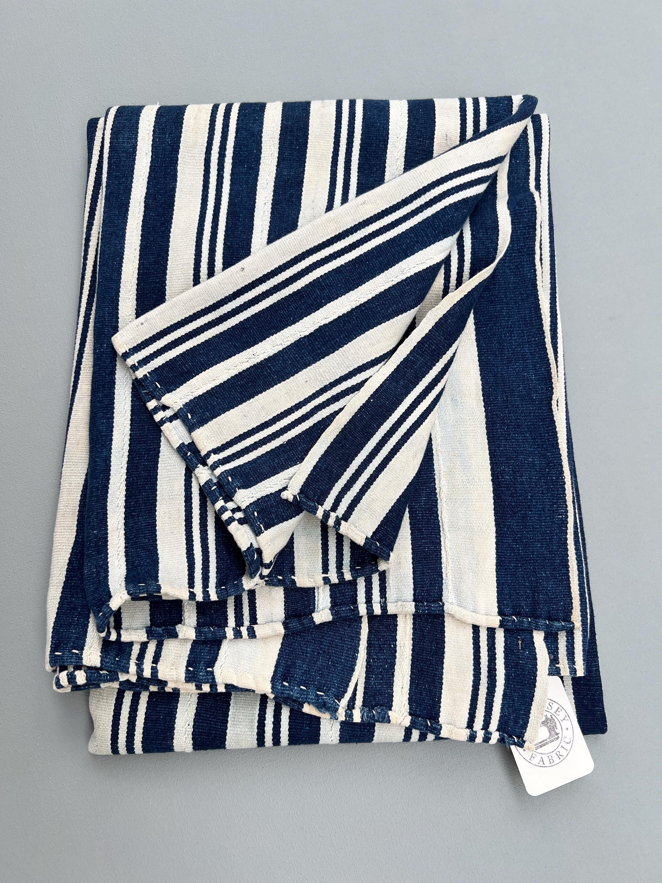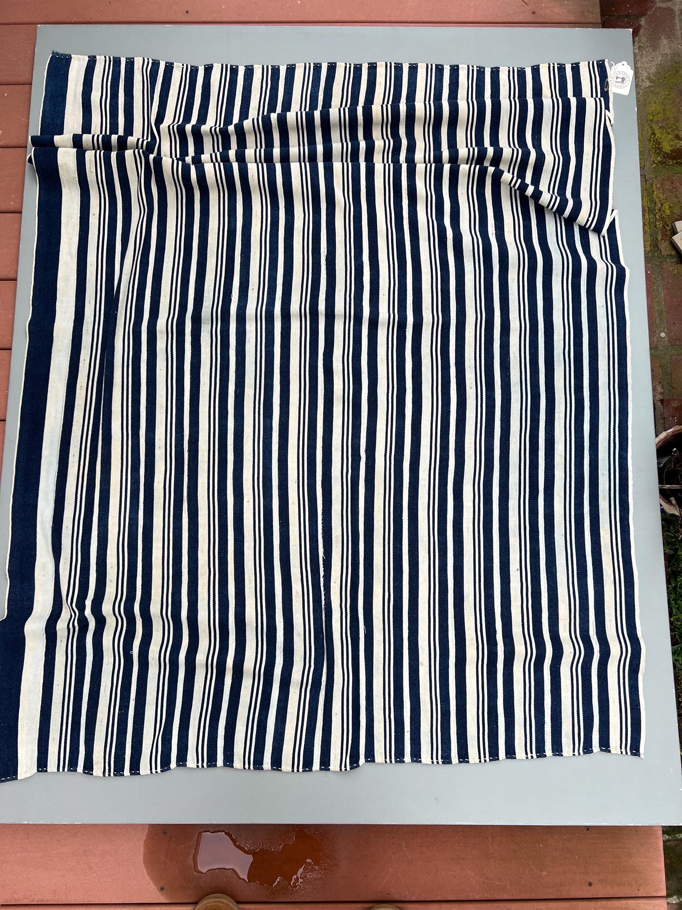 Nautical striped textile in denim blue and ivory from Mali, West Africa. This listing is for the exact textile in the photo.