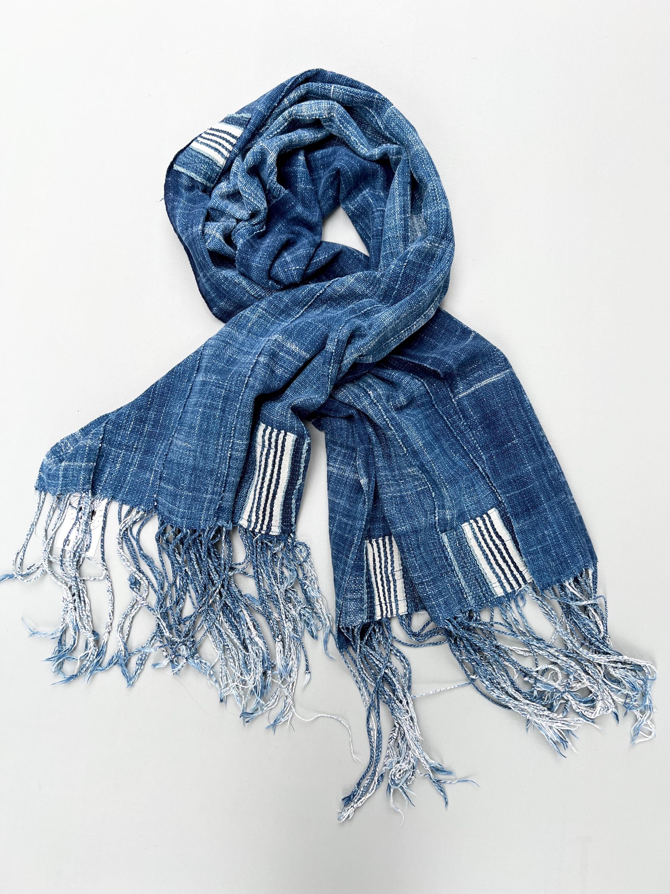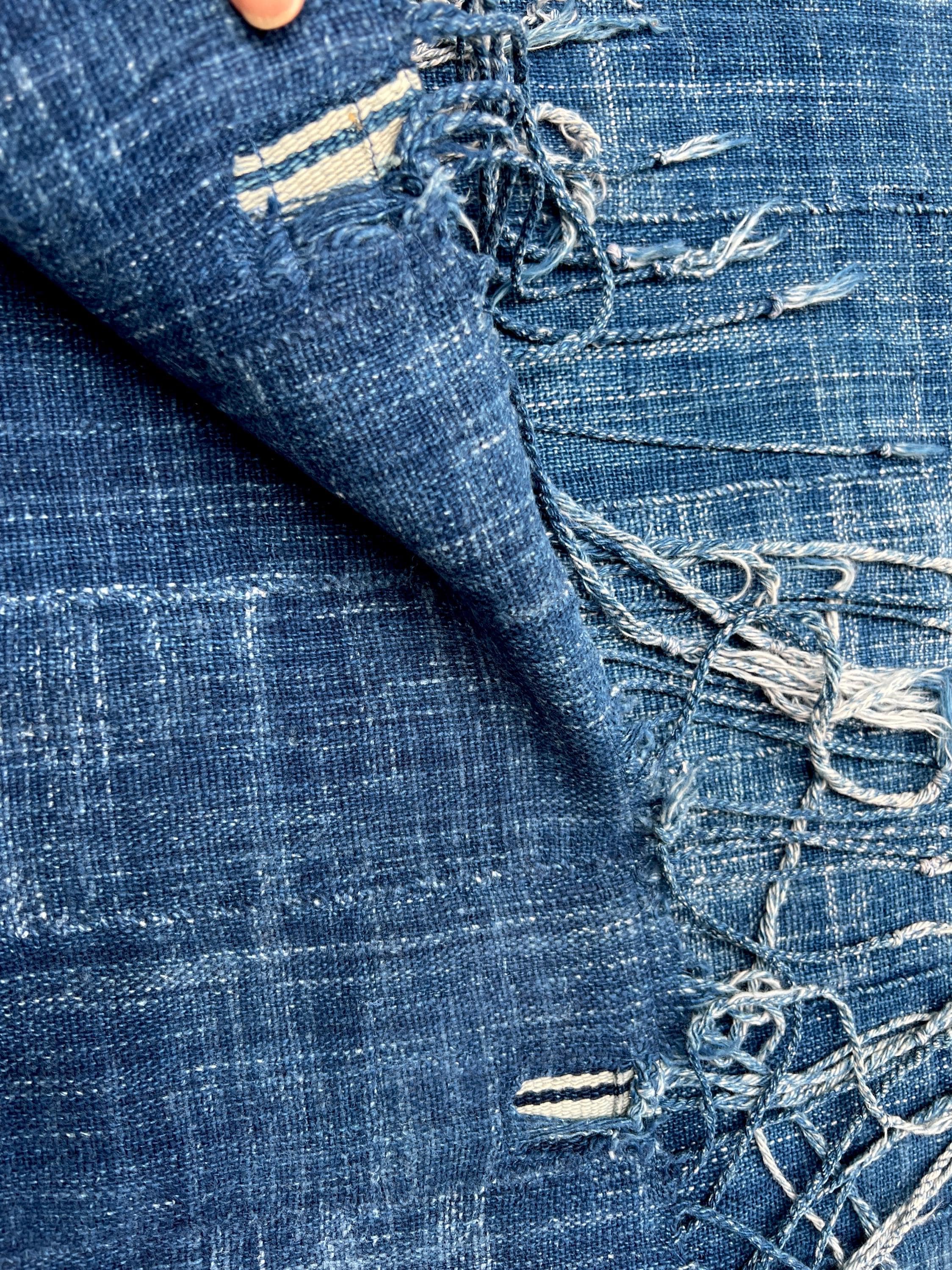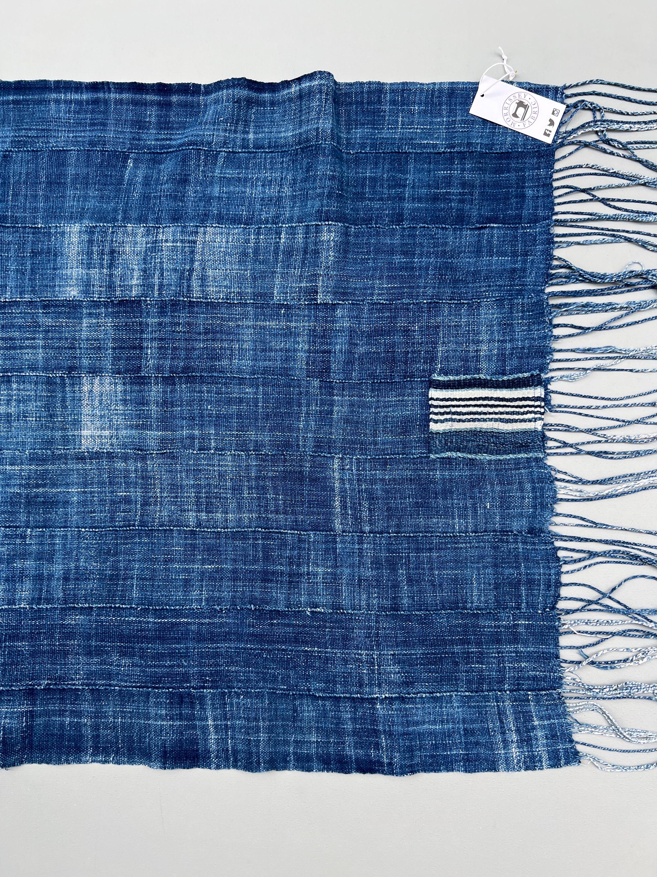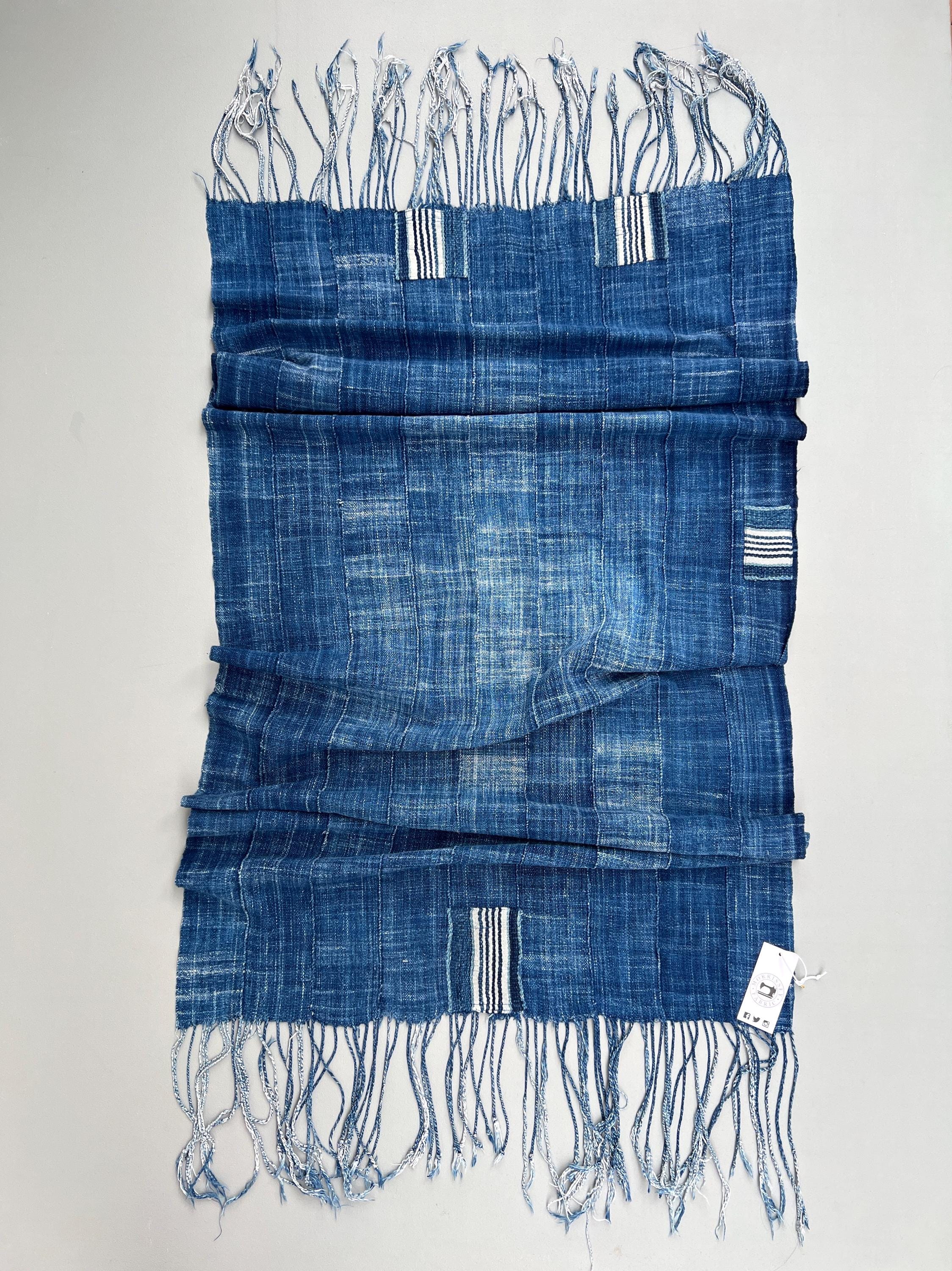 Vintage faded denim scarf with hand sewn patch. Almost impossible to find these beautiful very faded African textiles anymore. Lovely perfectly imperfect shawl or scarf for male or female who loves distressed denim. Coordinates back to just about anything.