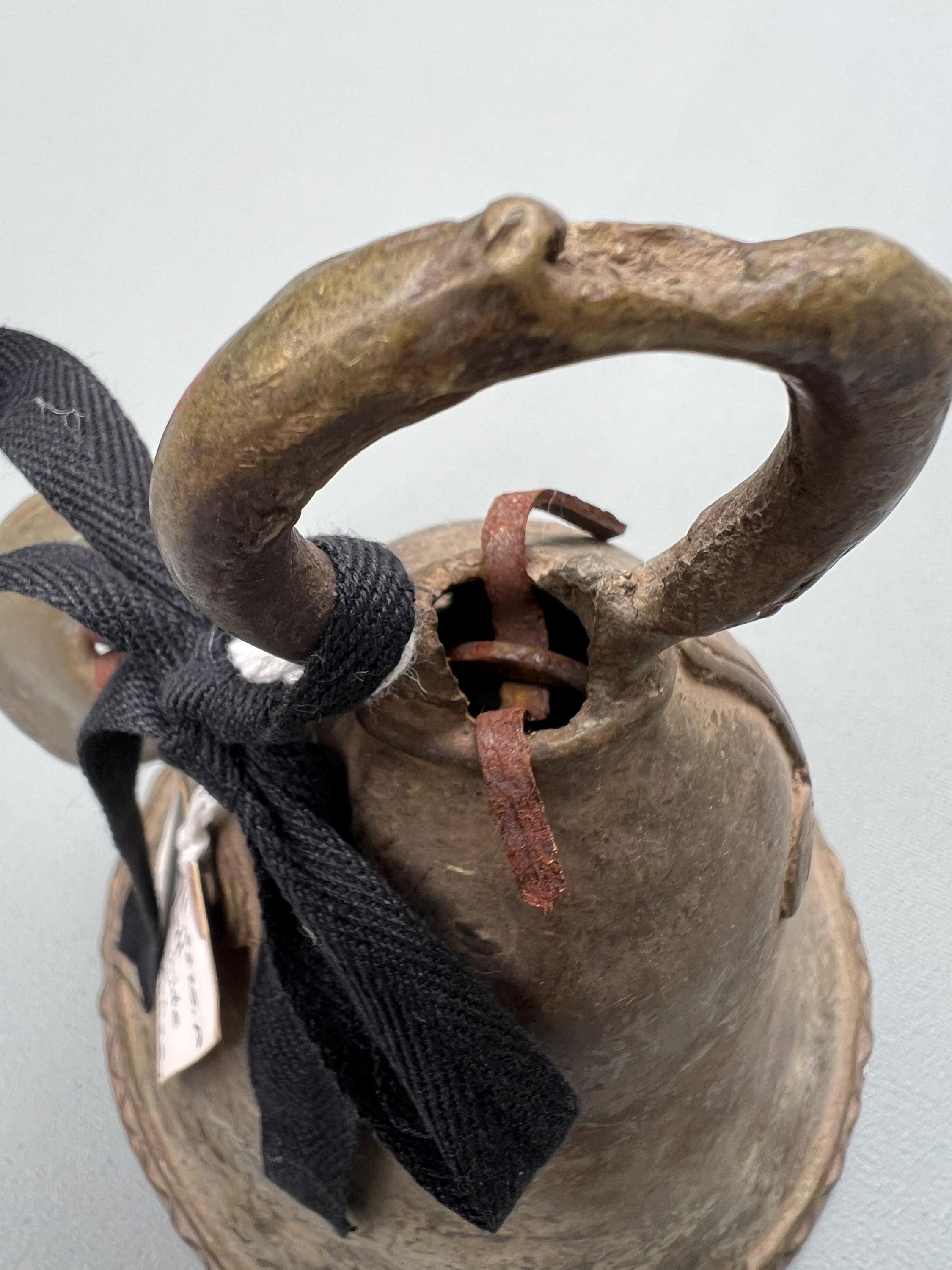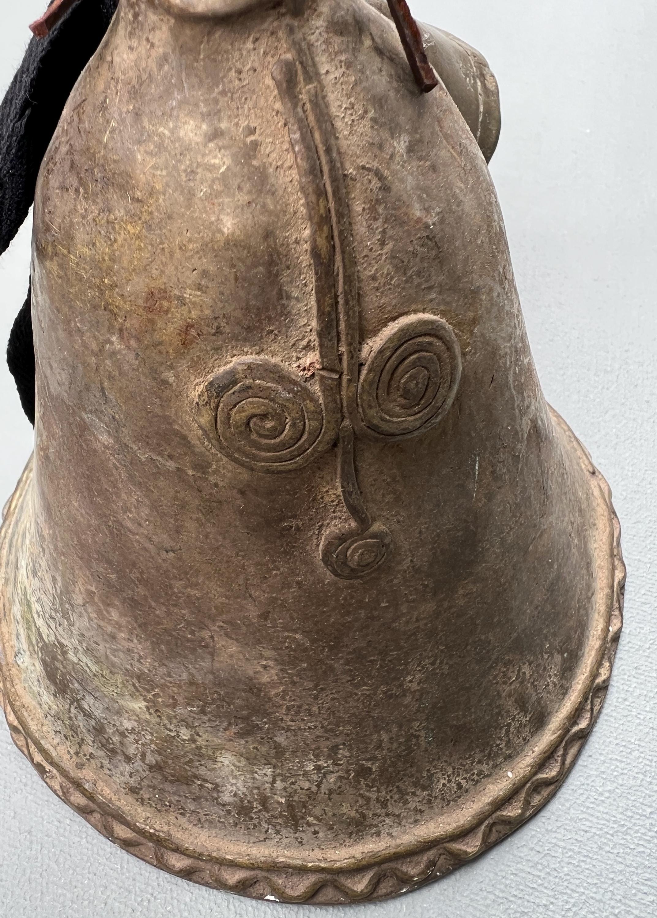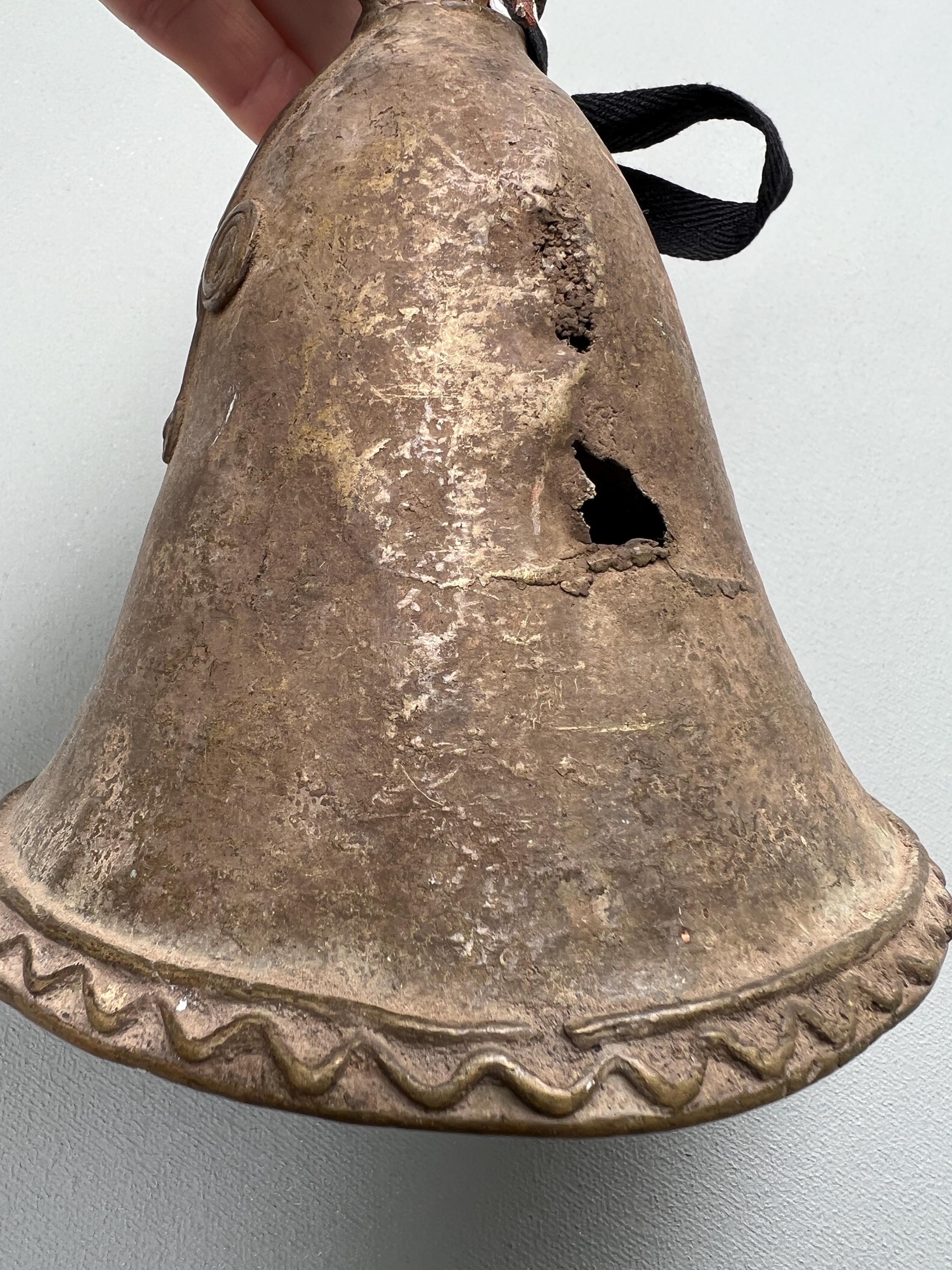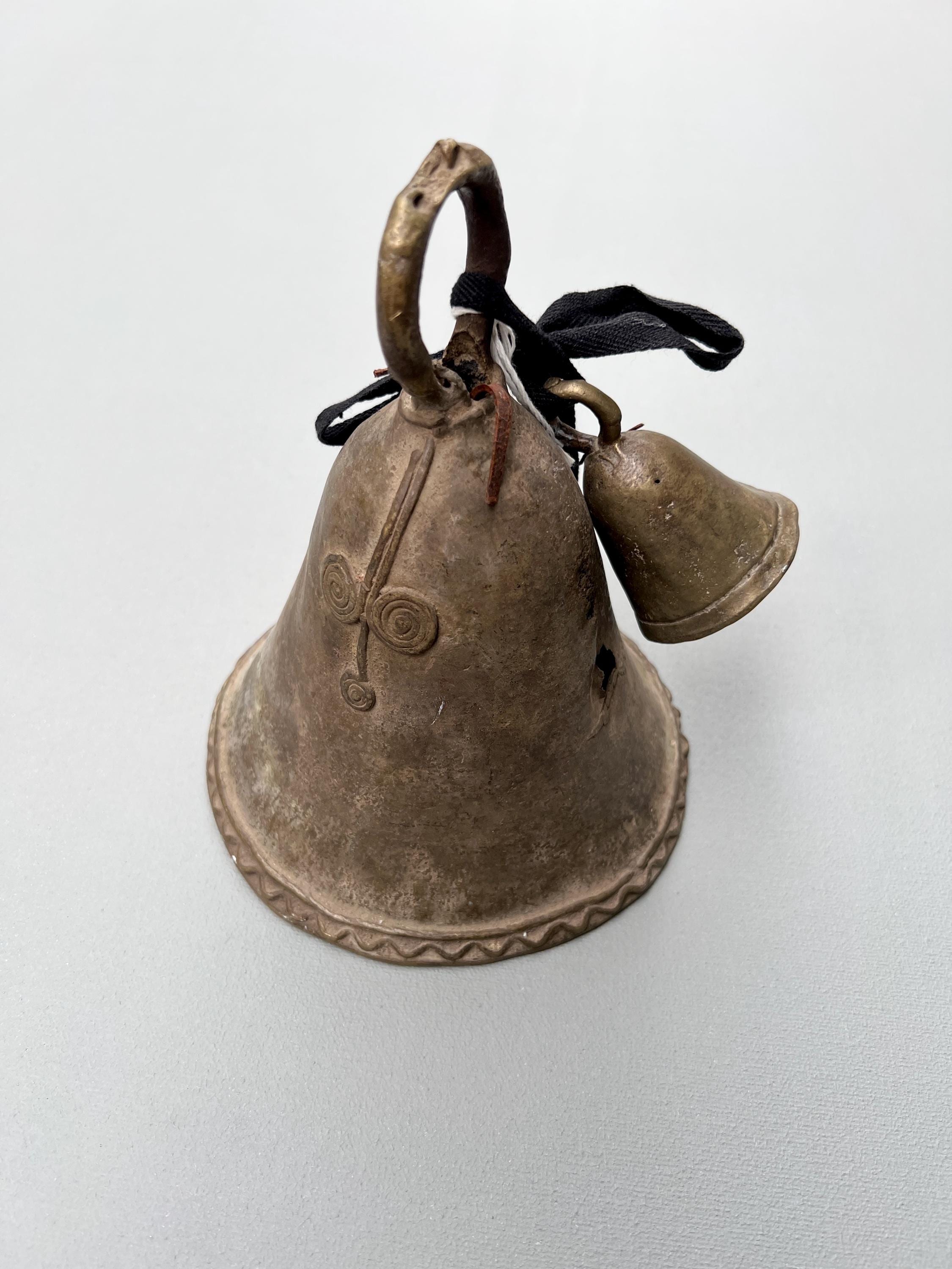 Bells- large and a small bronze bells make a handsome set. Primitive, hand made, and solid bronze this listing is for the set of two in the photos.