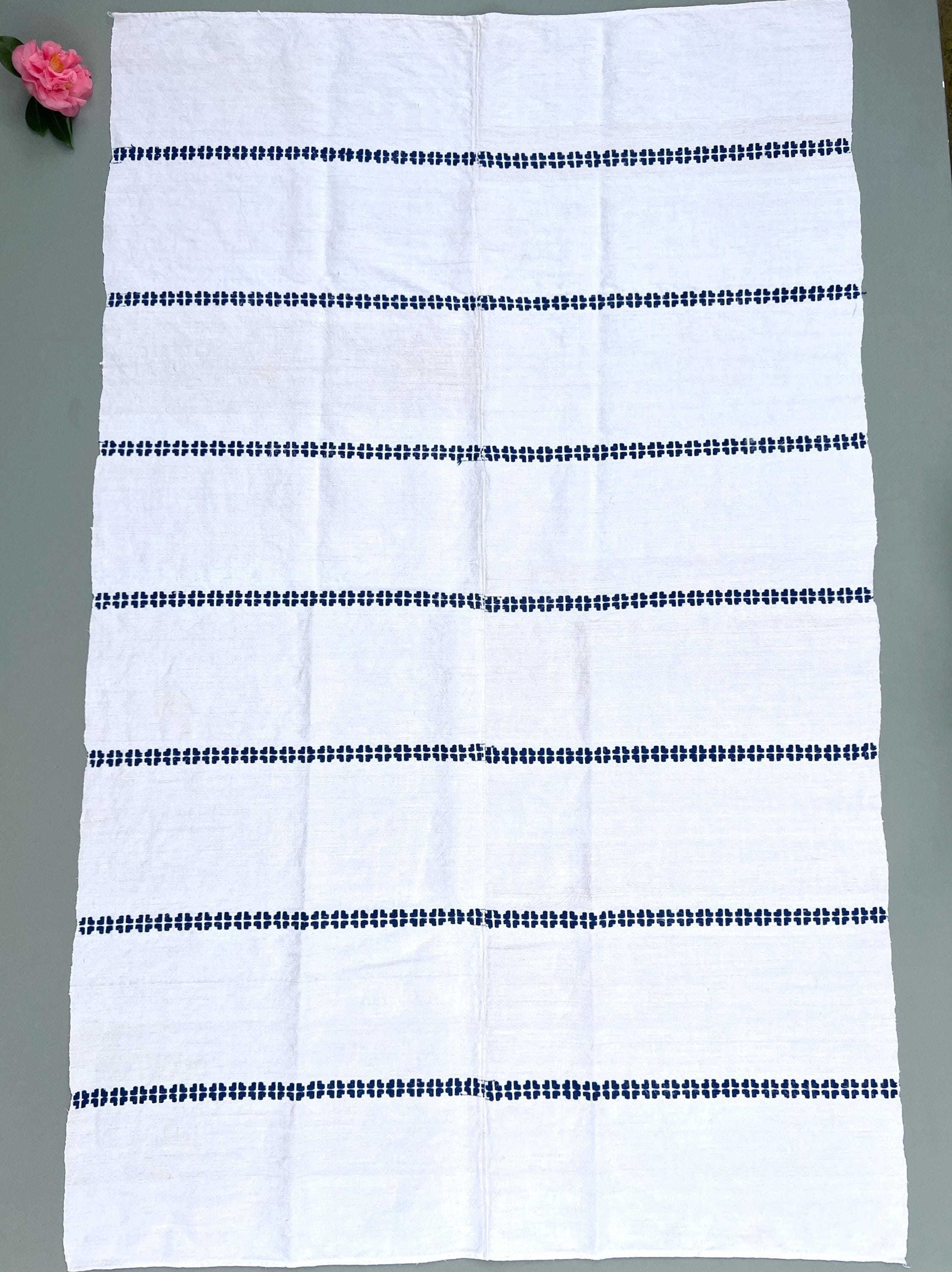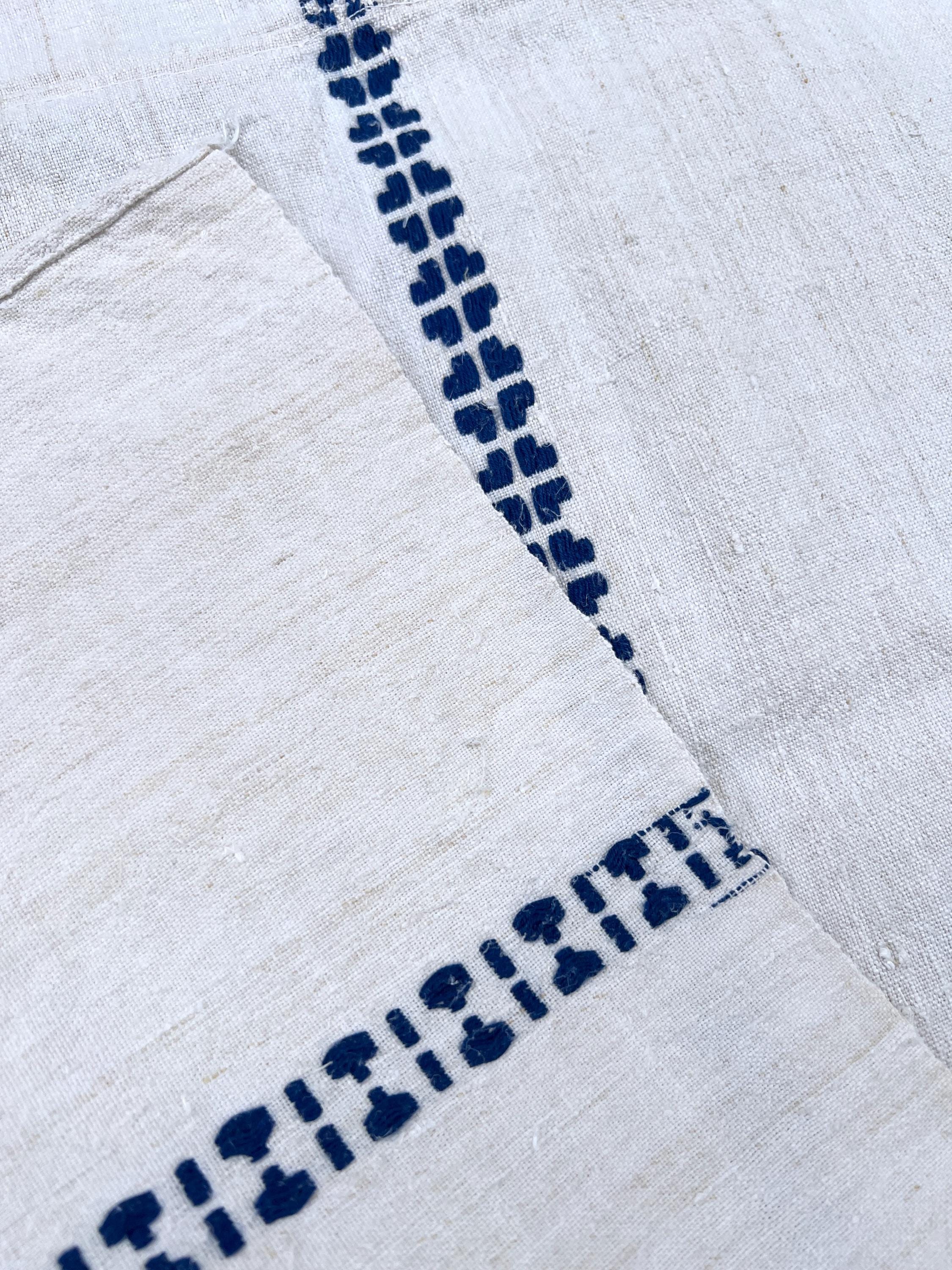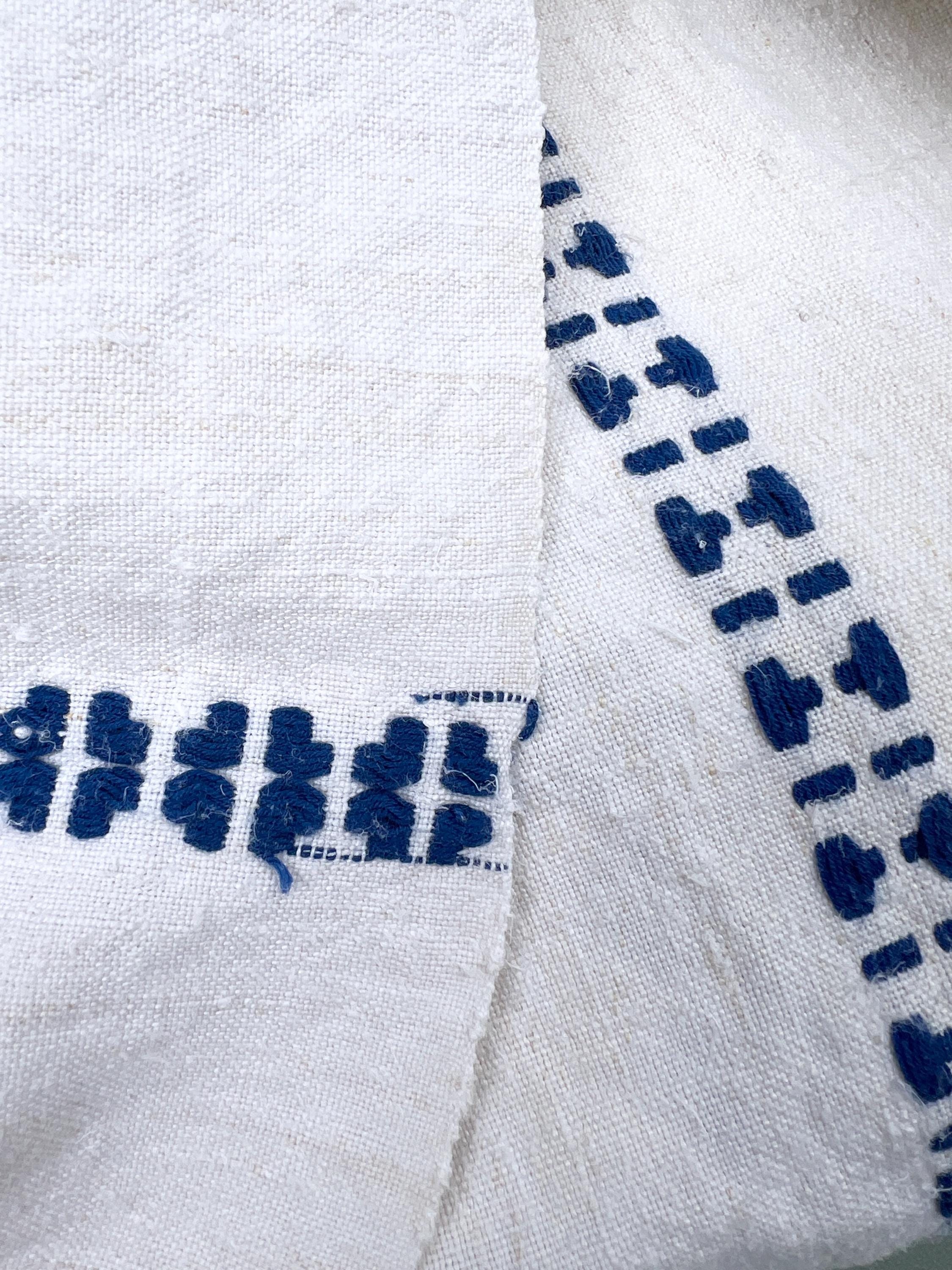 These textiles are, by nature, extremely Eco-friendly. The estimated age of this textile is 50 to 75 years old. This type of cloth was naturally home grown, home retted (in local lakes and ponds) and woven with minimal tools. These textiles are being re-cycled today showcasing the lovely craftsmanship of past generations. Another feature that makes these textiles eco-friendly is their durability. These textiles were designed to endure generations of constant use and will have an extremely long life. The timeless beauty of this linen makes these textiles the perfect choice for any home. An environmentally friendly choice.