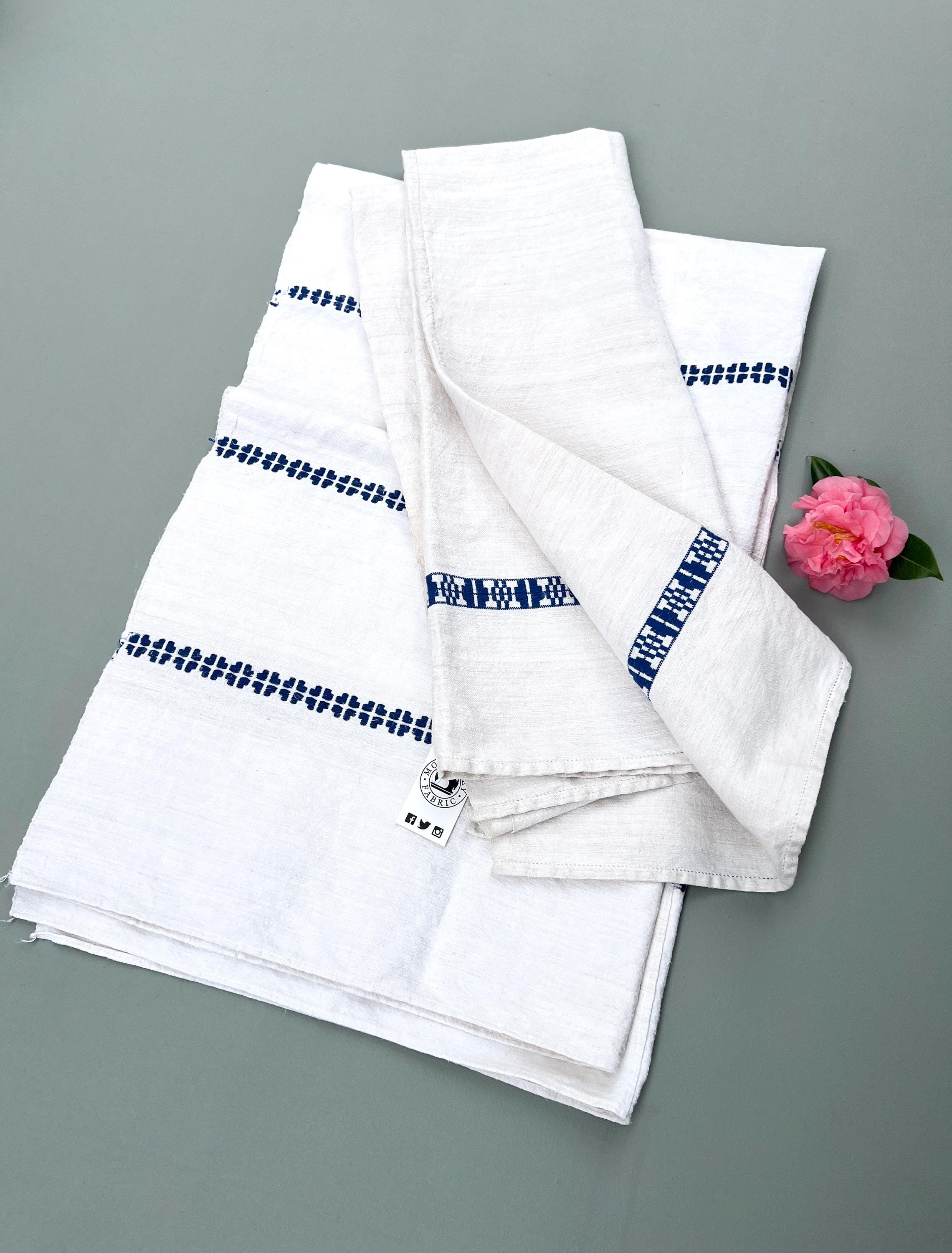 Due to the handmade nature of these linens (homespun natural linen fibers and handwoven on a wooden loom), there are some minor imperfections in the weave of the fabric. These are considered part of their character.