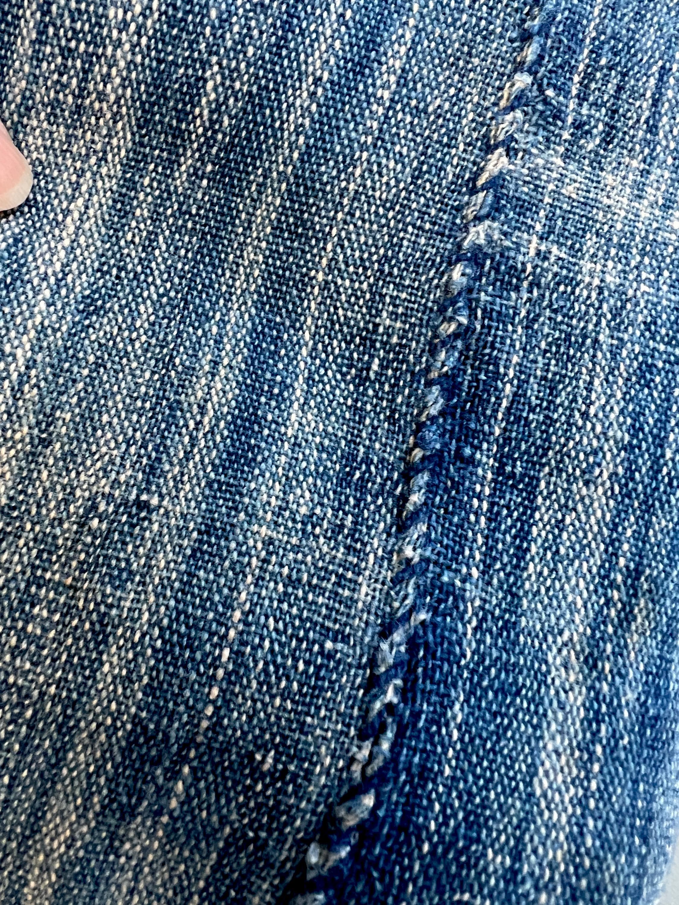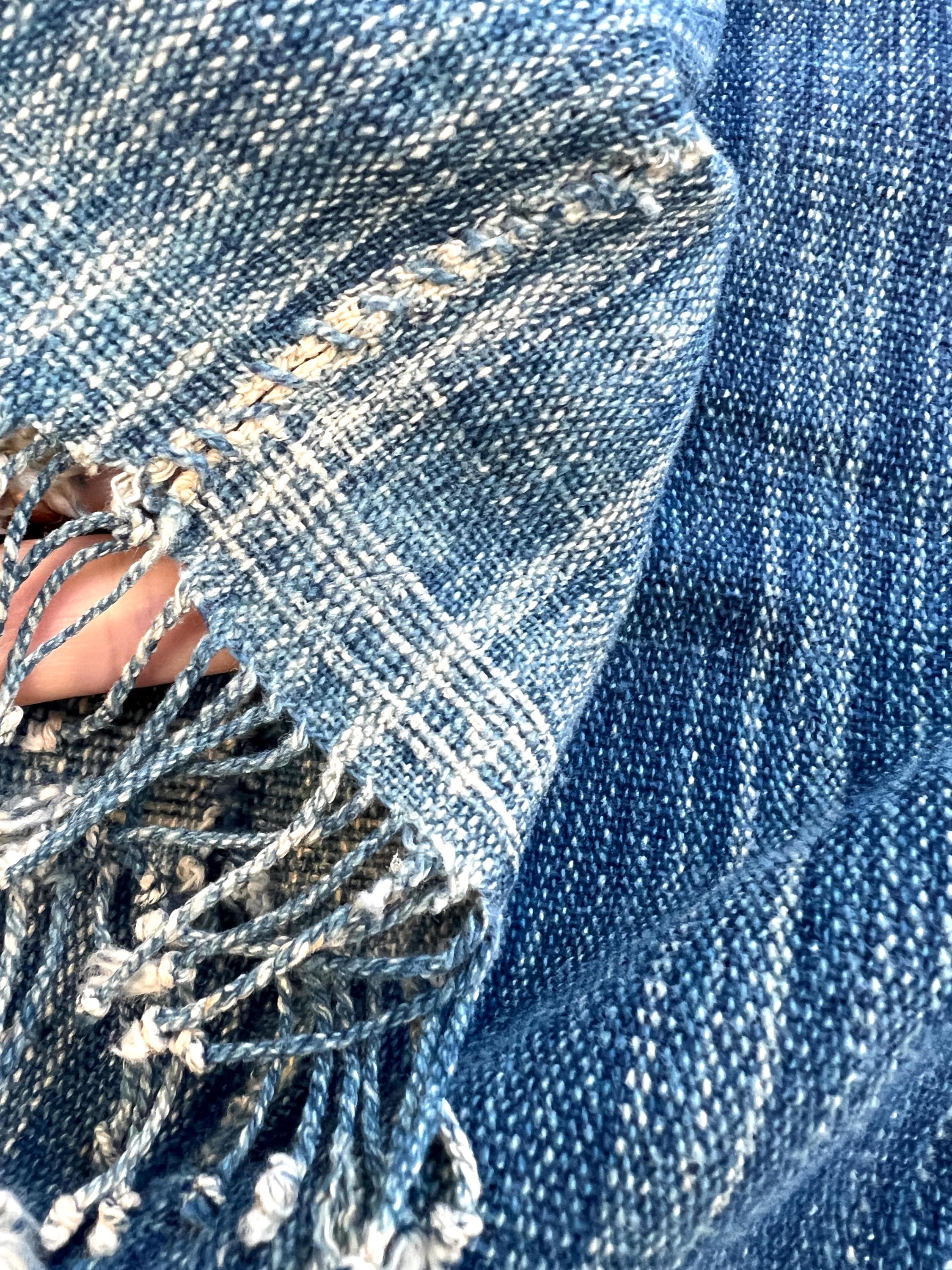 This throw (or wrap) is for someone who loves distressed and unusual blue jeans and enjoys the perfectly imperfect worn look of a vintage find.