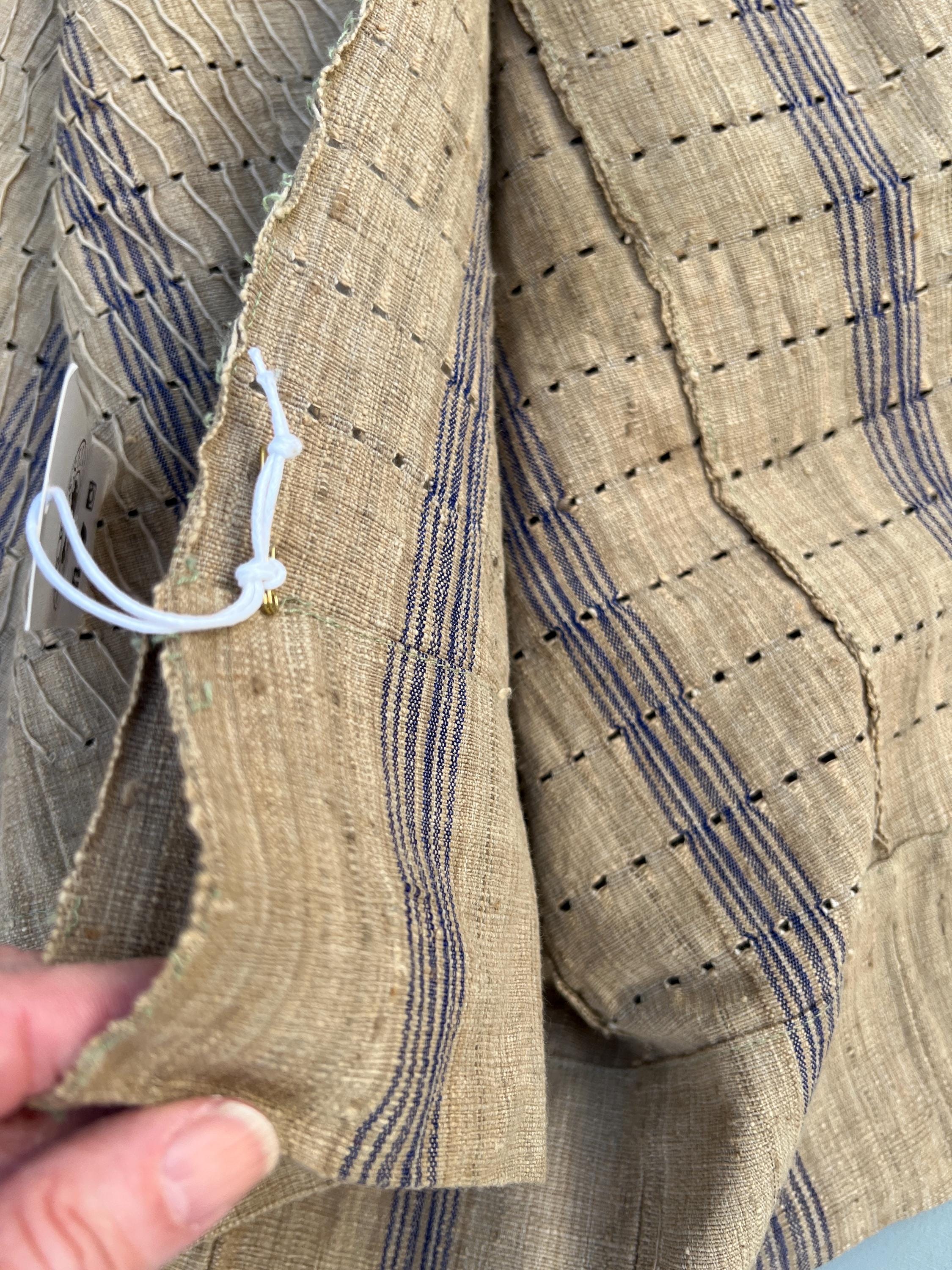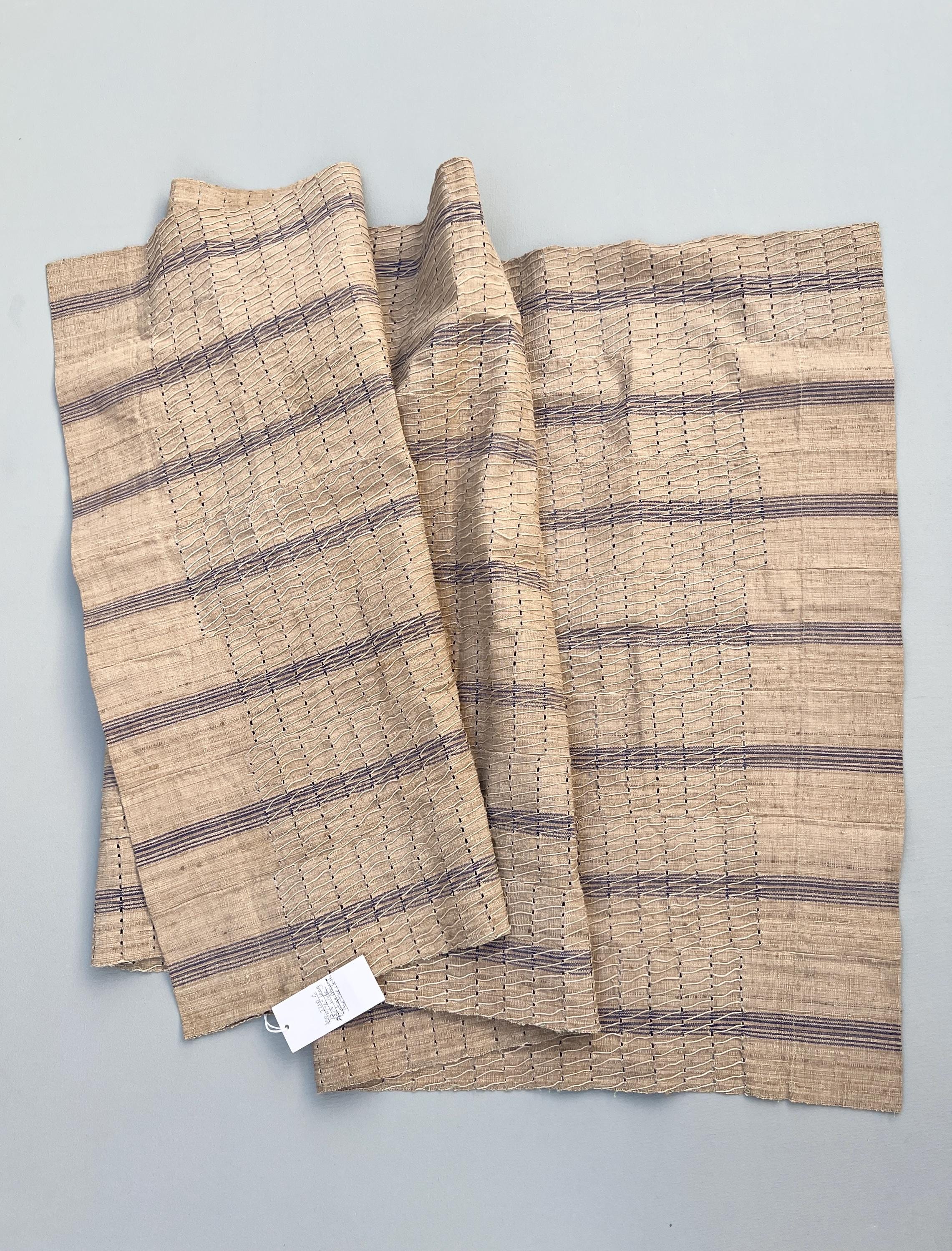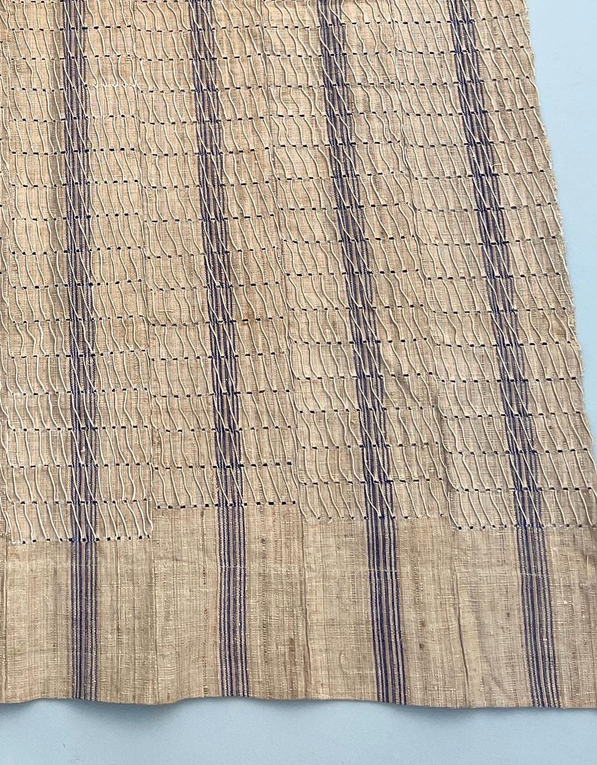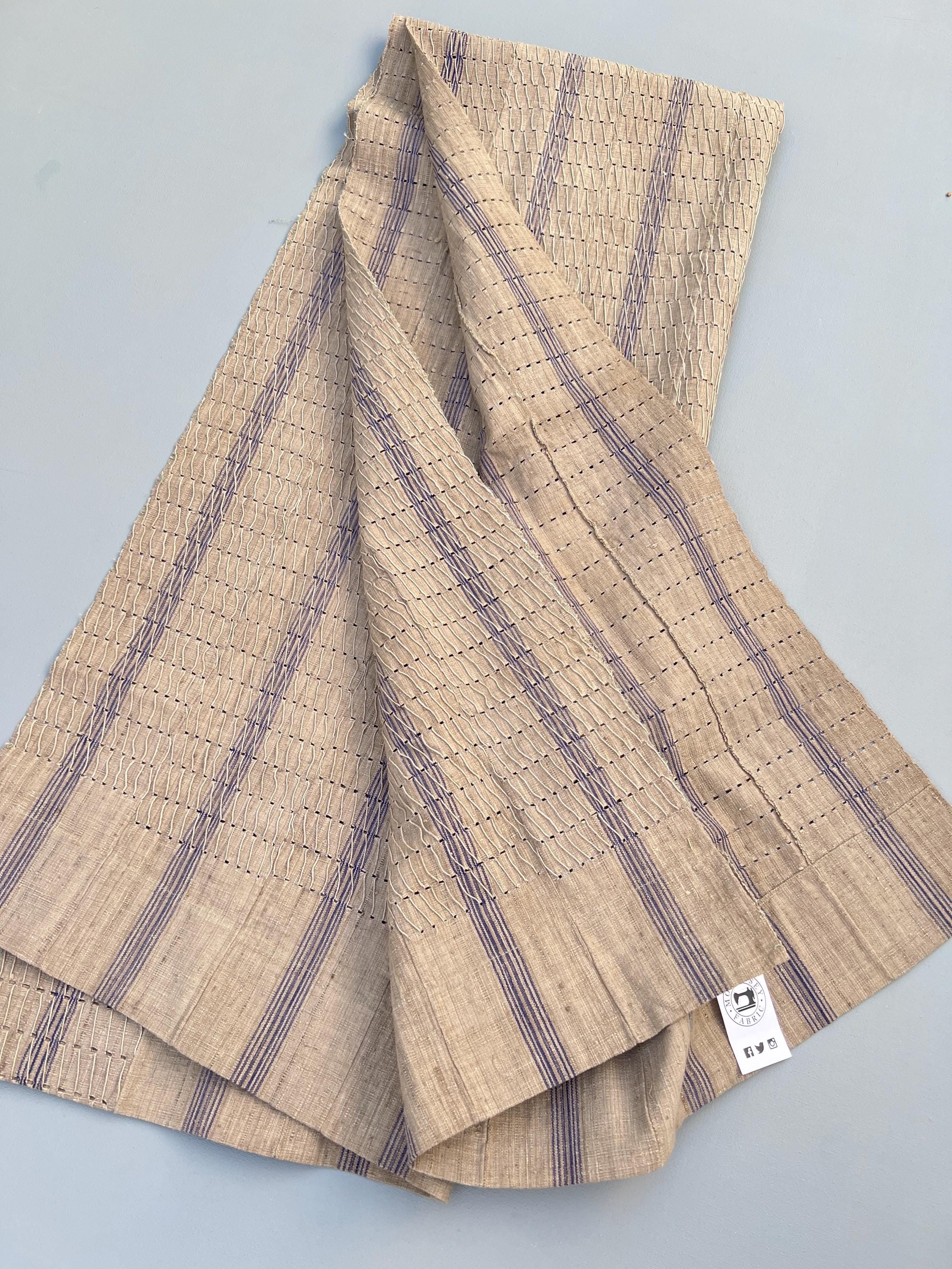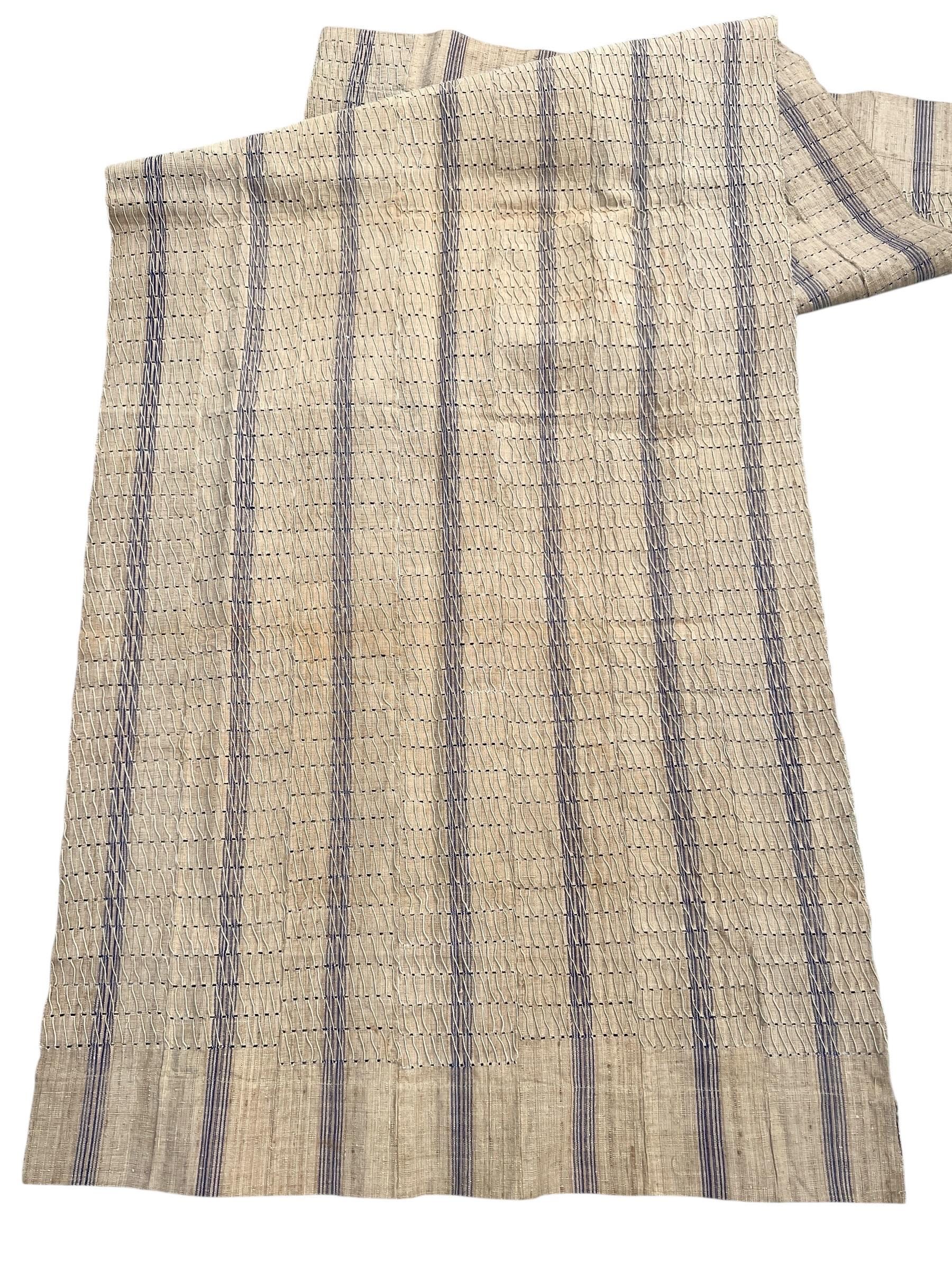 Vintage African fabric called Aso Oke from Yoruba, Africa. Beautiful textile has tiny eyelet dots and surface looped fibers for a decorative effect. These vintage natural fiber fabrics make lovely pillows. This Asoke is made from several narrow strips of cloth stitched together to make one wide cloth.