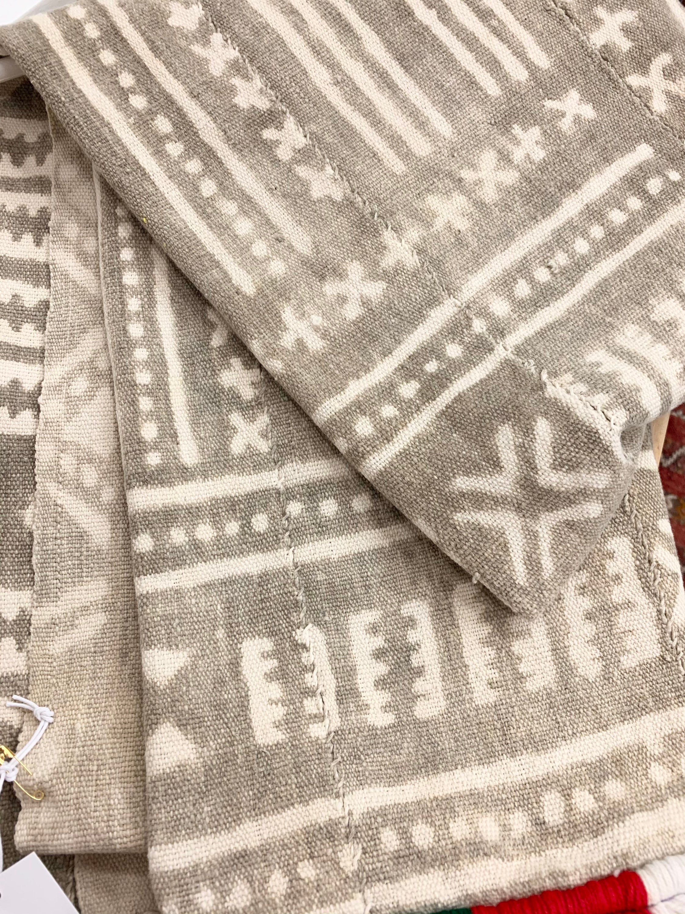 There are some faded areas as seen in photos. These are areas where the fermented mud pattern has faded. This is a wonderful textile for display or make into pillows.